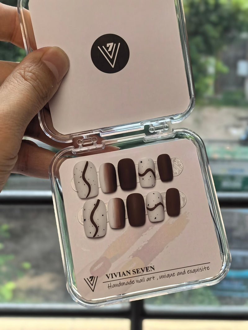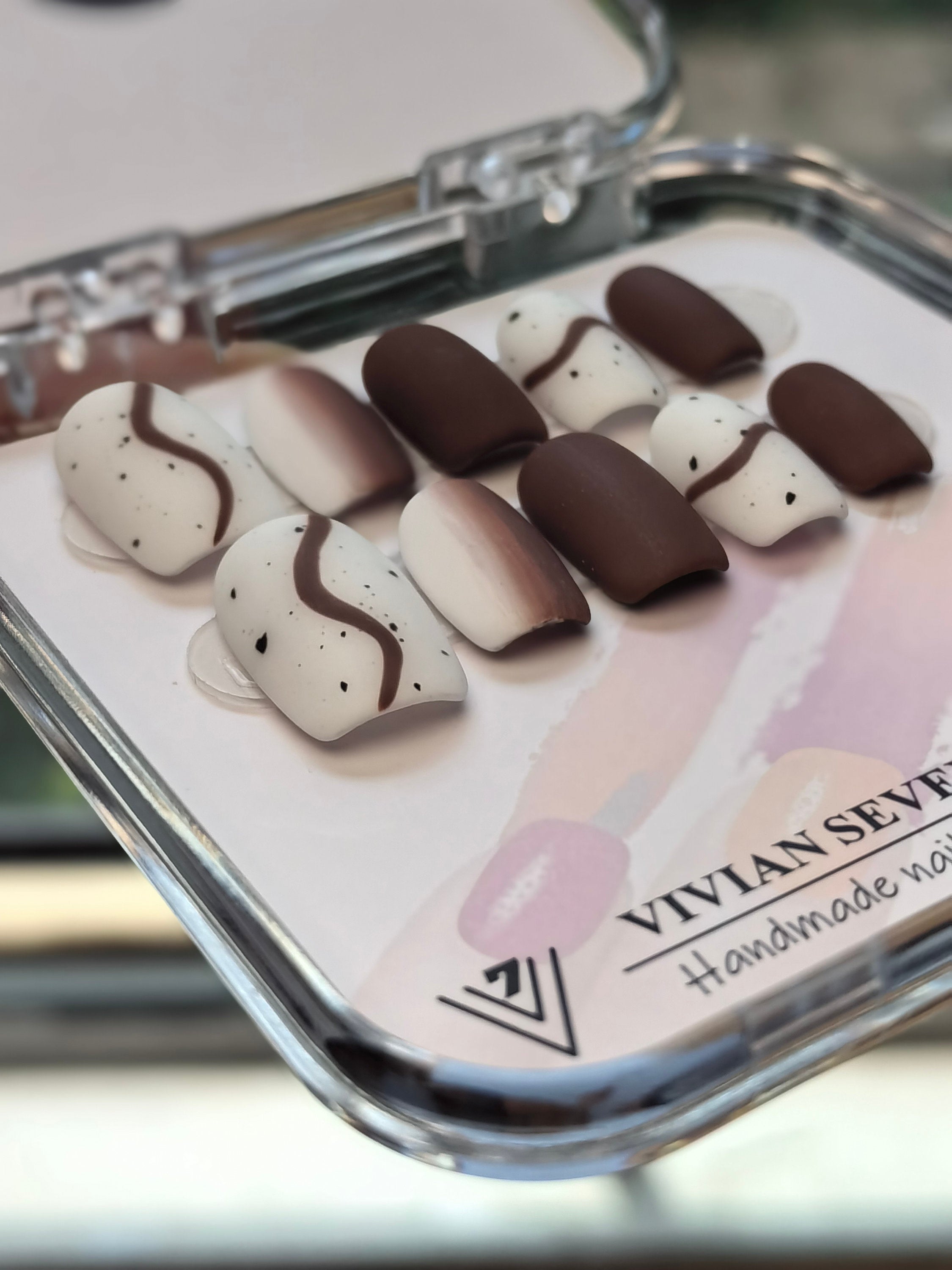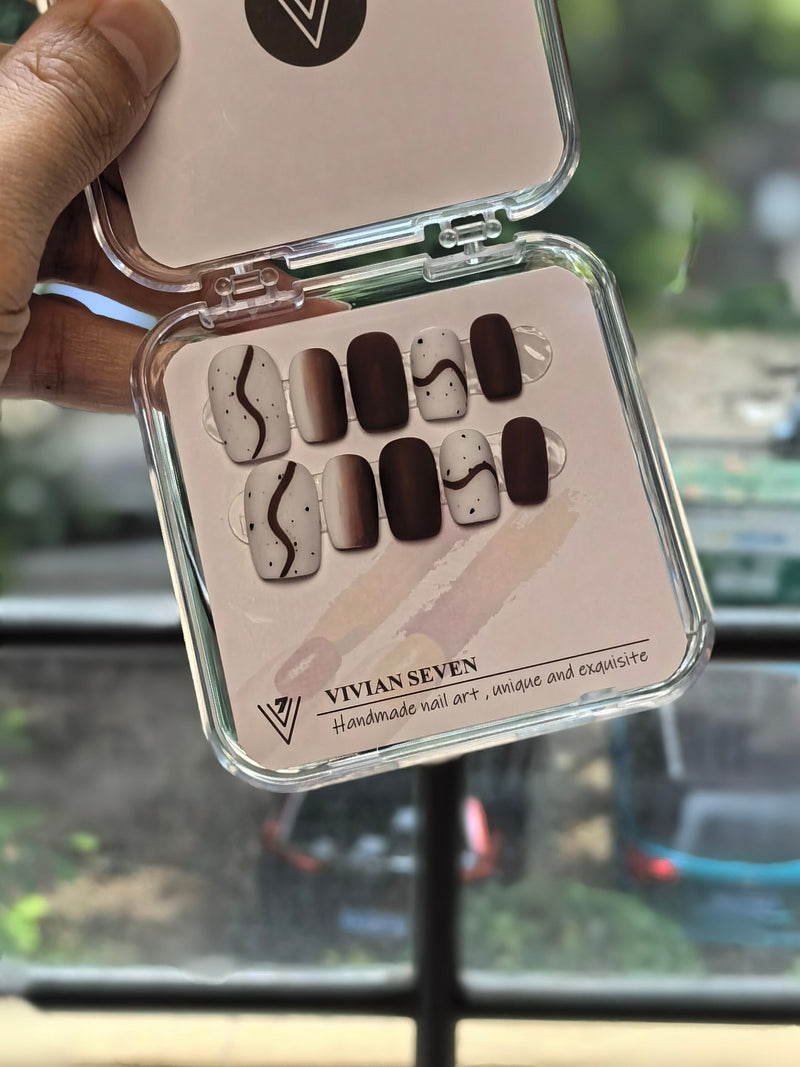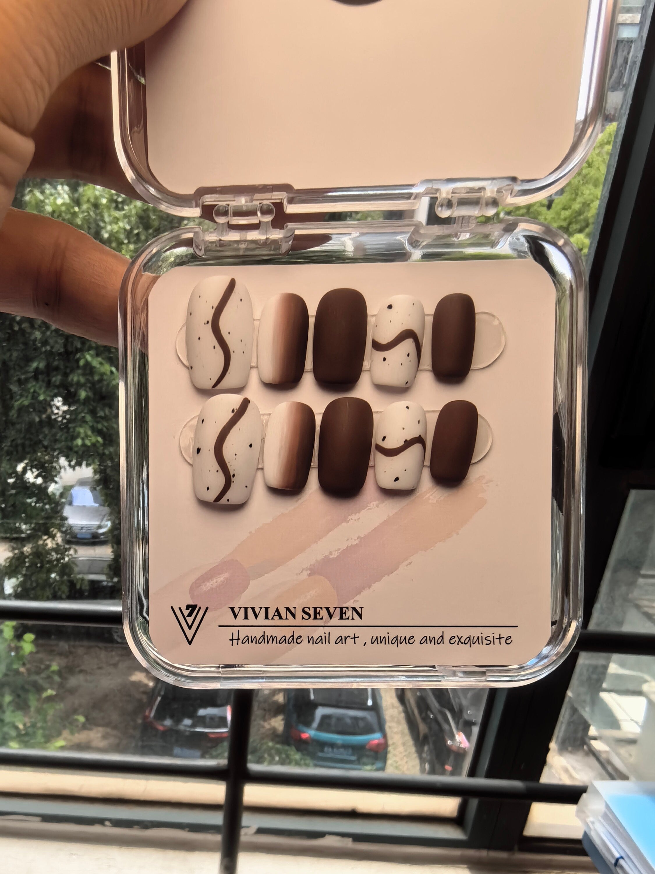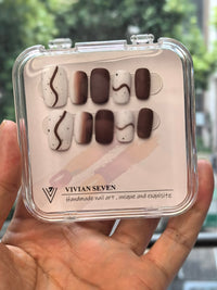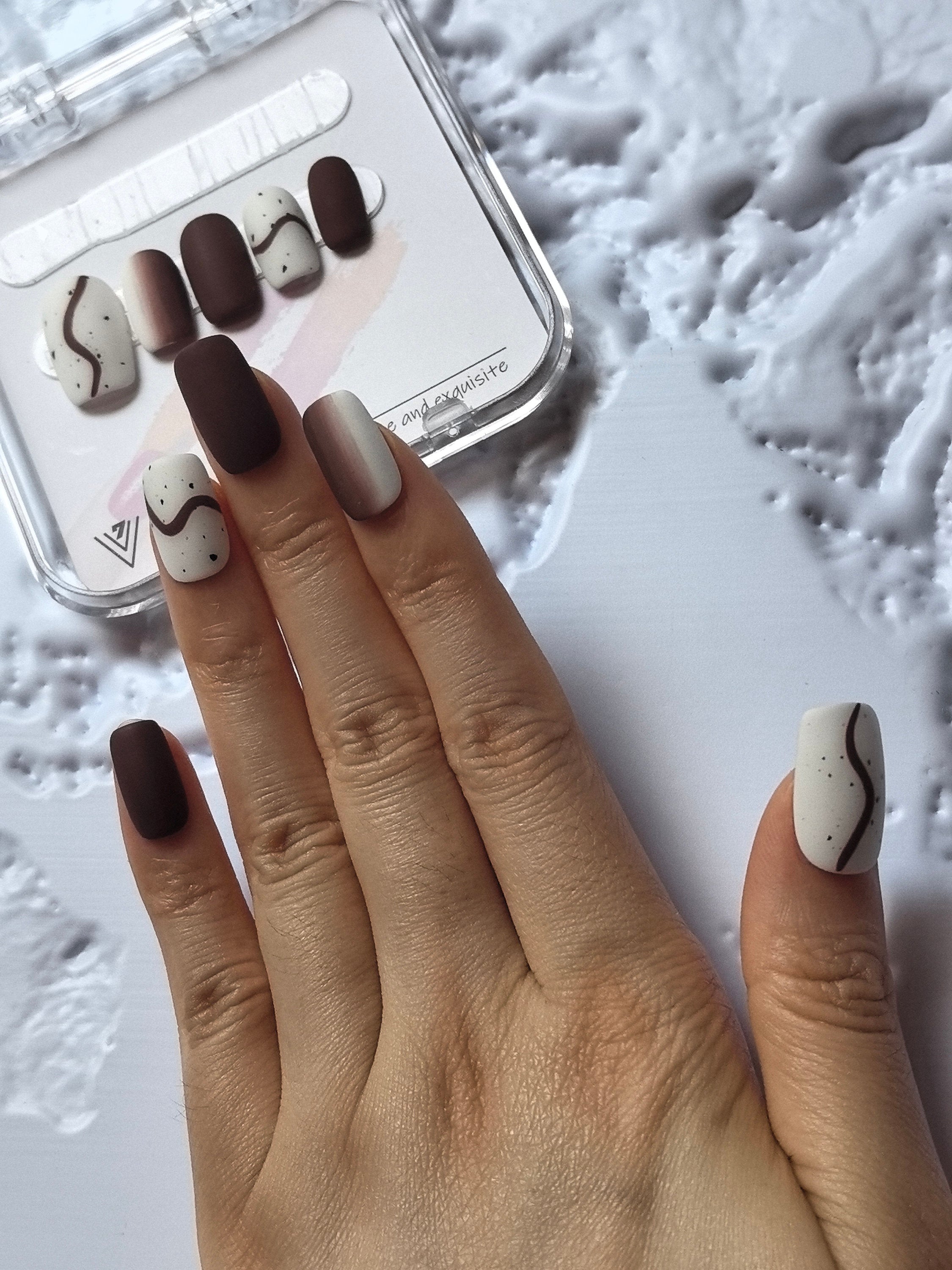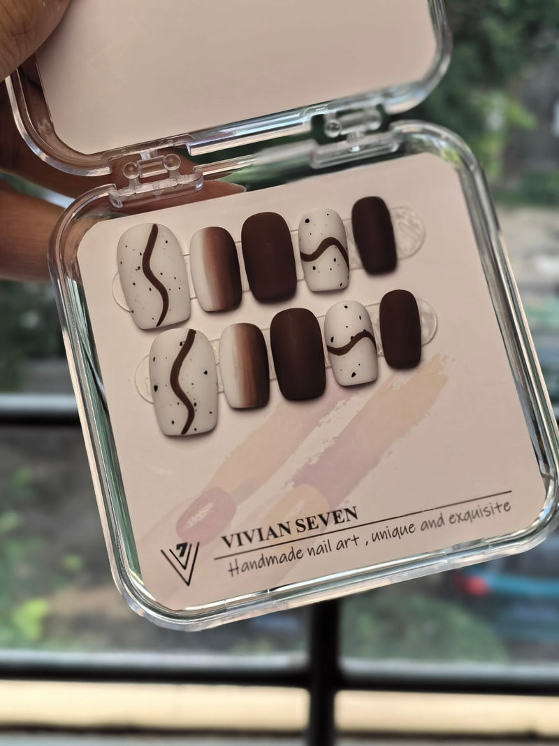 Hand Painted Brown Frosted Square Gel Post Acrylic Fake Press-on Nails
