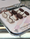 The entire production process is carried out by hand. It primarily involves intricate hand painting, starting with careful nail polishing, followed by the application of base gel, double layers of nail polish gel, and the addition of other elements such as magic mirror powder, fine line drawing gel and sculpting gel, depending on the design. Finally, the nails are reinforced and sealed to ensure long-lasting perfection.