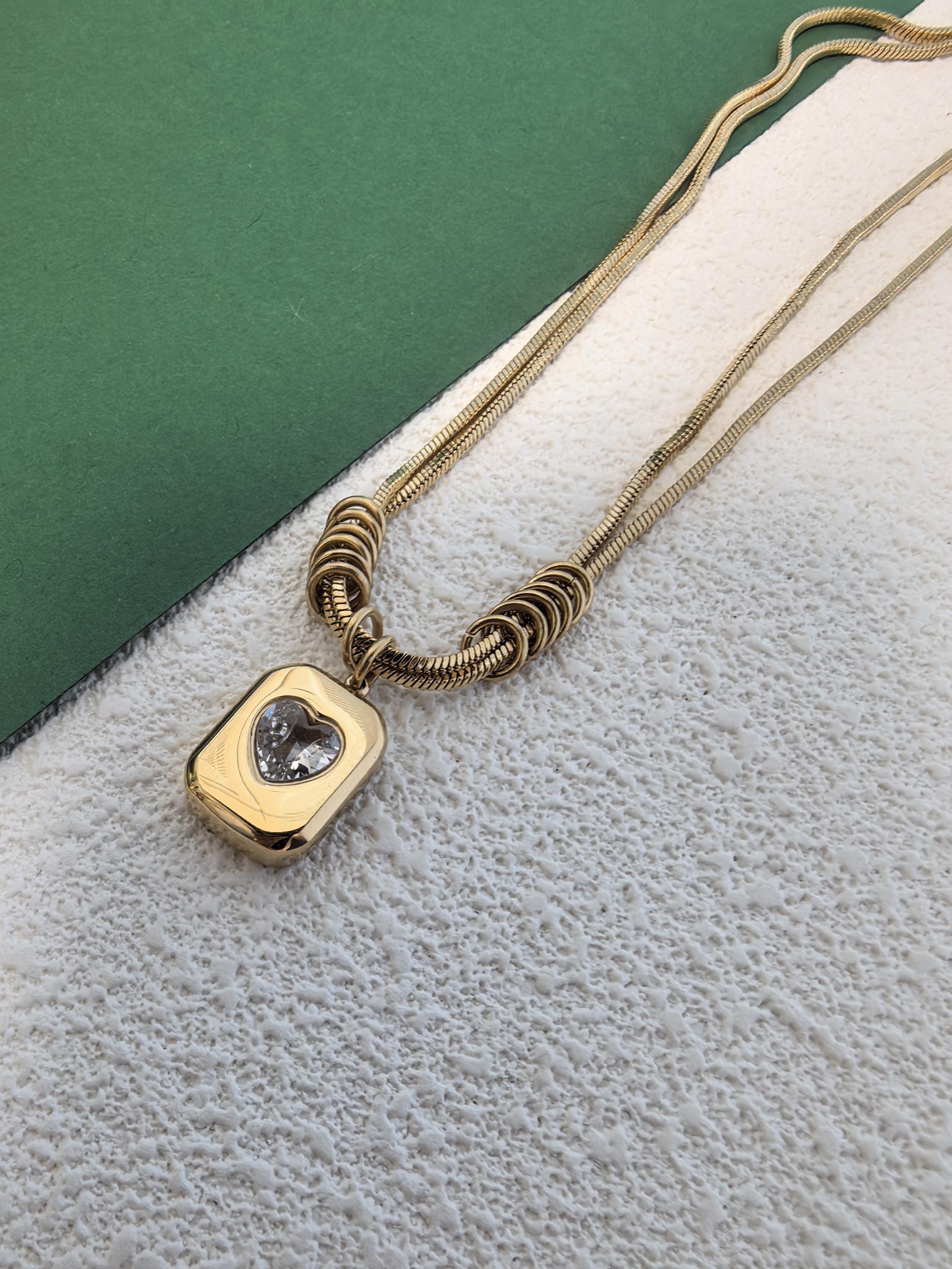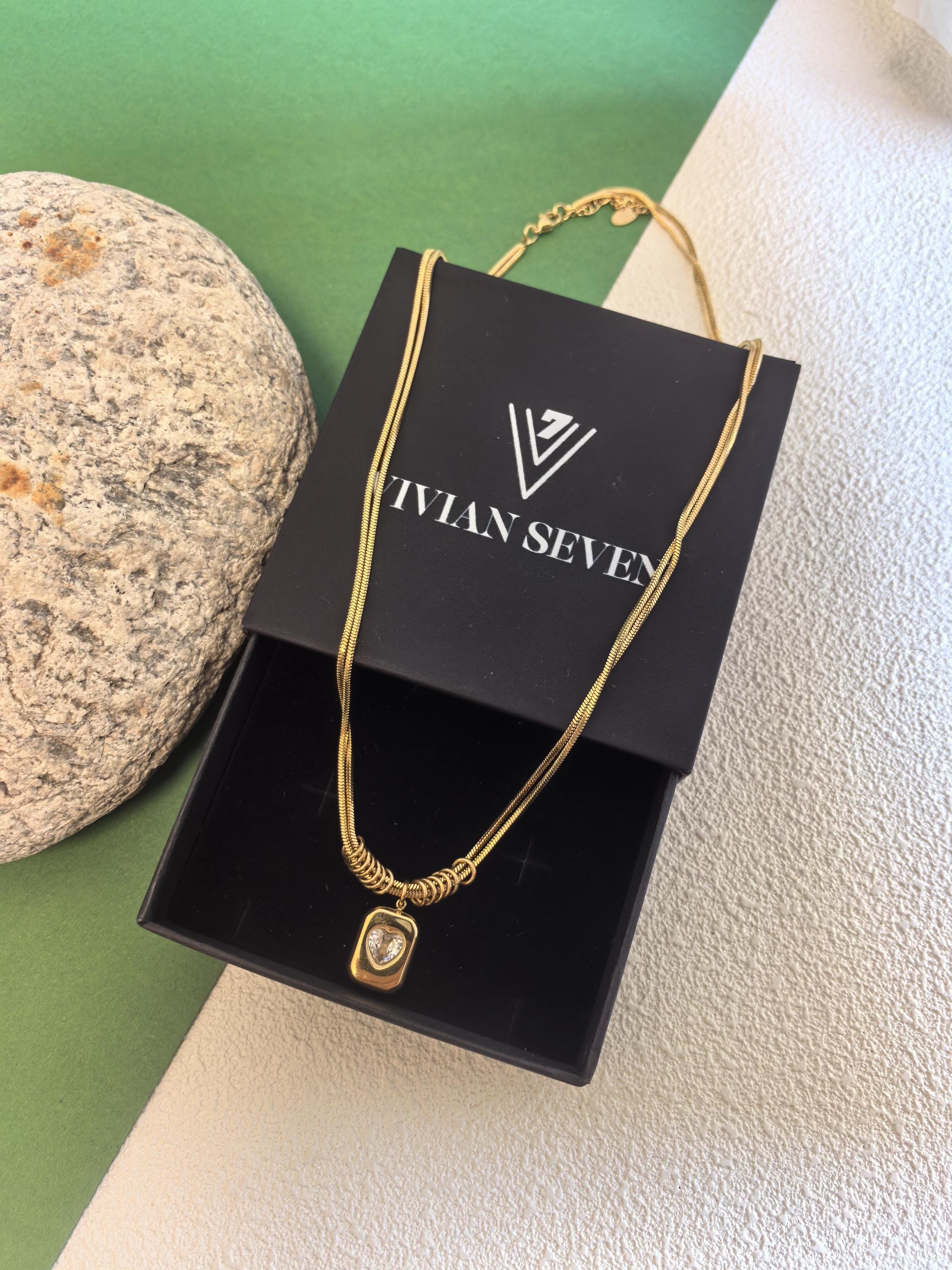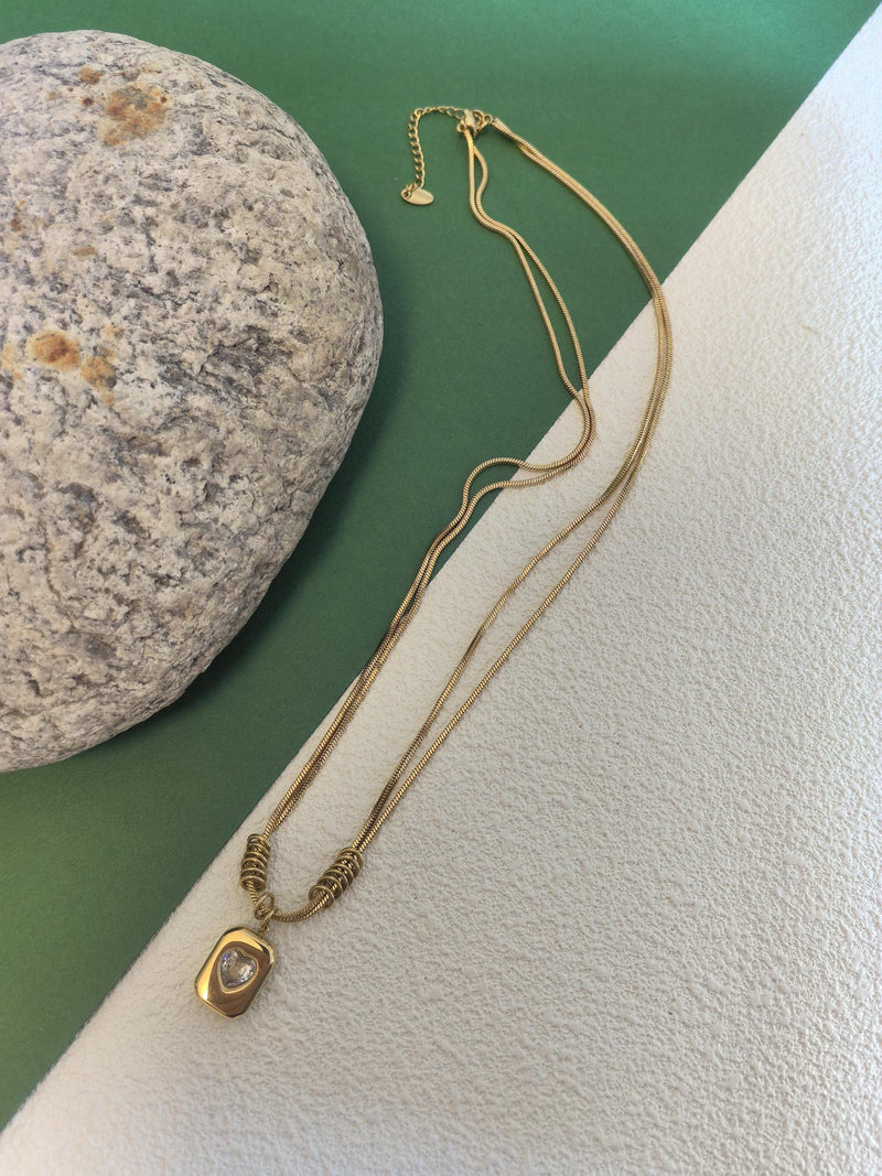 Elevate your style with our layered chain zircon pendant necklace. Crafted with 18k gold plate and titanium steel chain, it features a double-strand design and a stunning titanium steel pendant adorned with sparkling zircon stones. Perfect for adding a touch of glamour to any outfit, this women's jewelry is a must-have for your collection!