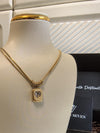 18K Gold Plate Titanium Steel Layered Chain Zircon Pendant Necklace
