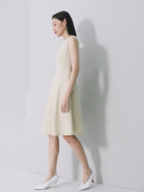 Classic Ivory Round Neck High Waist Sleeveless Dress
