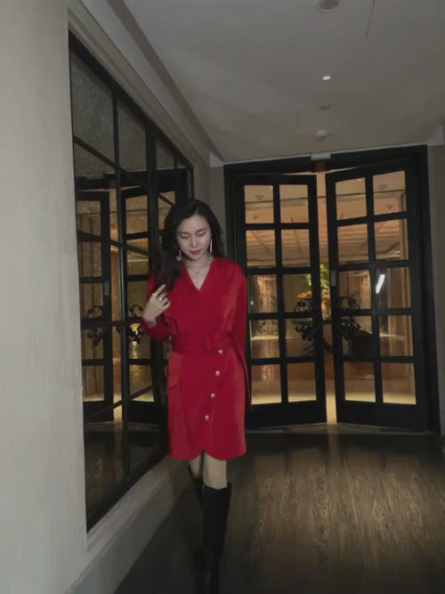 Custom Double Breasted Half Sleeve Slim Blazer Dress
