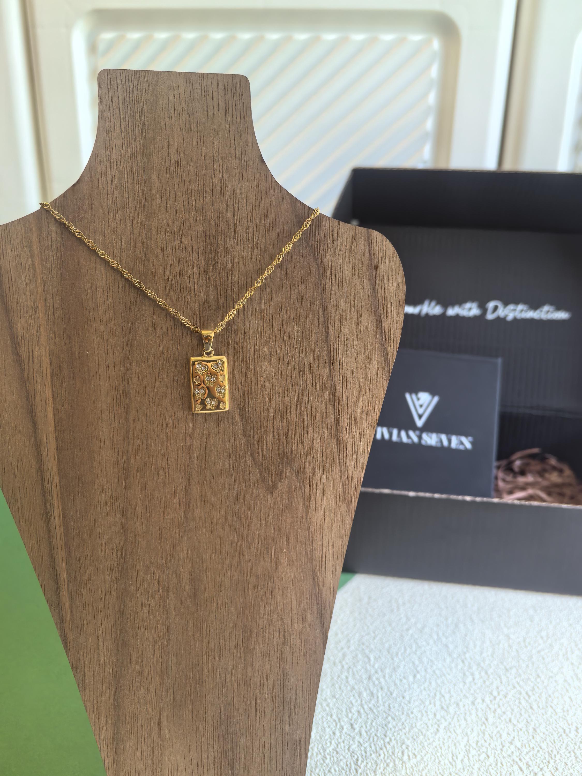 Transform your look with our Rectangle Pendant Necklace. The exquisite butterfly design and sparkling rhinestones inlaid on titanium steel create an alluring piece of women's jewelry. Elevate your style to a luxurious level that will surely catch everyone's attention.