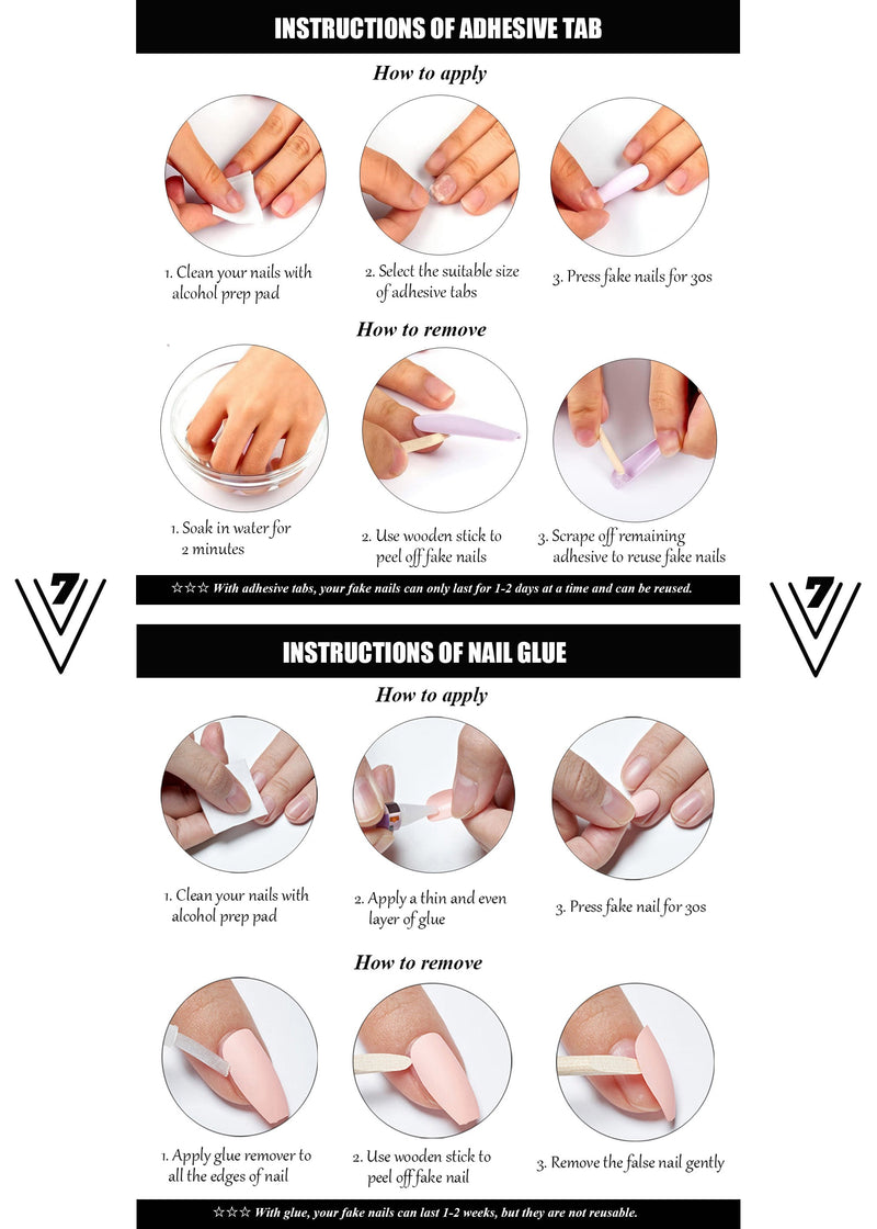 ❶ With glue, your fake nails can last 1-2 weeks, but they are not reusable.