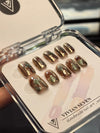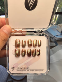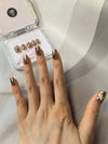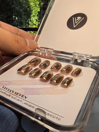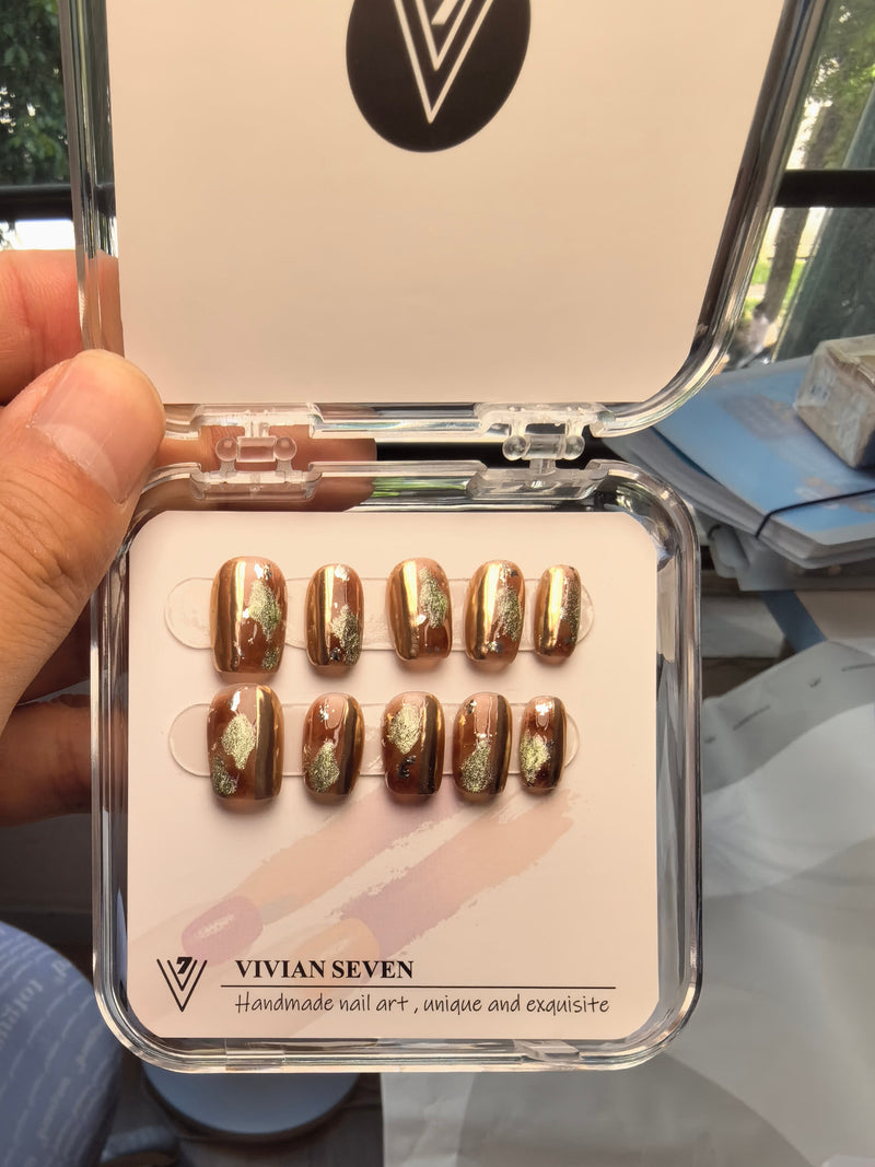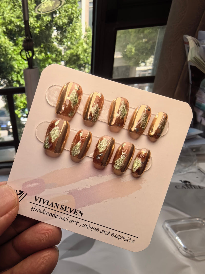 The entire production process is carried out by hand. It primarily involves intricate hand painting, starting with careful nail polishing, followed by the application of base gel, double layers of nail polish gel, and the addition of other elements such as magic mirror powder, fine line drawing gel and sculpting gel, depending on the design. Finally, the nails are reinforced and sealed to ensure long-lasting perfection.