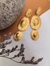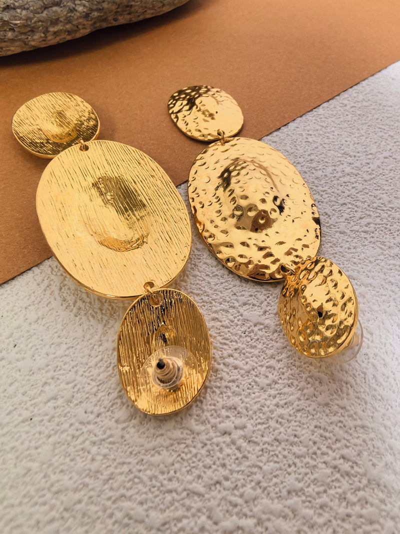 Gold Hammered Oval Disc Drop Linear Dangle Geometric Earrings