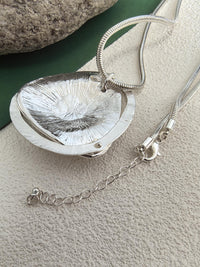 Elevate your style with our Long Silver Snake Chain Scratched Metal Geometric Patchwork Pendant Necklace. This statement piece features a sleek silver-colored snake chain that drapes elegantly around your neck. The bold pendant is crafted from a striking patchwork of irregular geometric metal shapes, giving it a modern, artistic appeal. With its scratched, distressed finish, this necklace adds a unique, edgy touch to any outfit. Perfect for those who love to make a statement, this piece effortlessly blends contemporary design with timeless sophistication.
