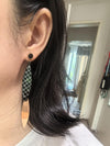 Rose Gold Titanium steel Plaid Black Disc Linear Drop Dangle Statment Earrings