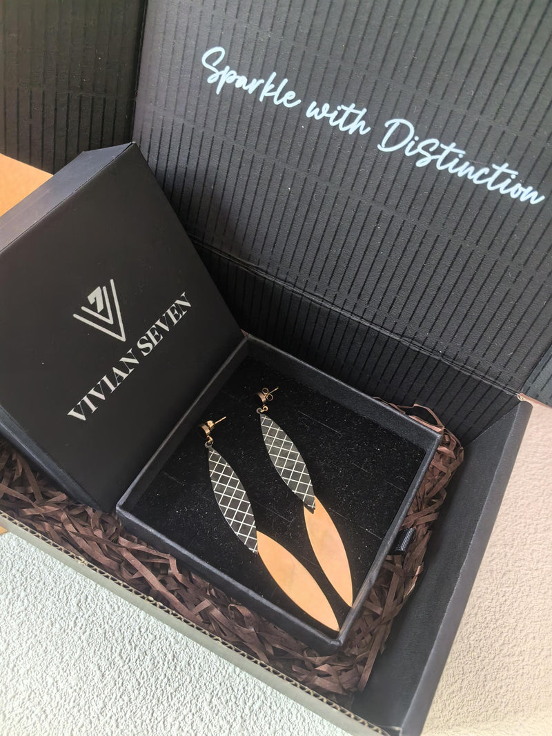 Make a statement with our Rose Gold Titanium Steel Statement Earrings. The intricate plaid pattern and elegant leaf silhouette add a touch of sophistication to any outfit. Crafted with rose gold plating and durable titanium steel, these drop earrings are a must-have for any stylish woman's jewelry collection.