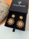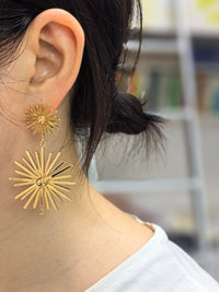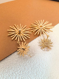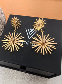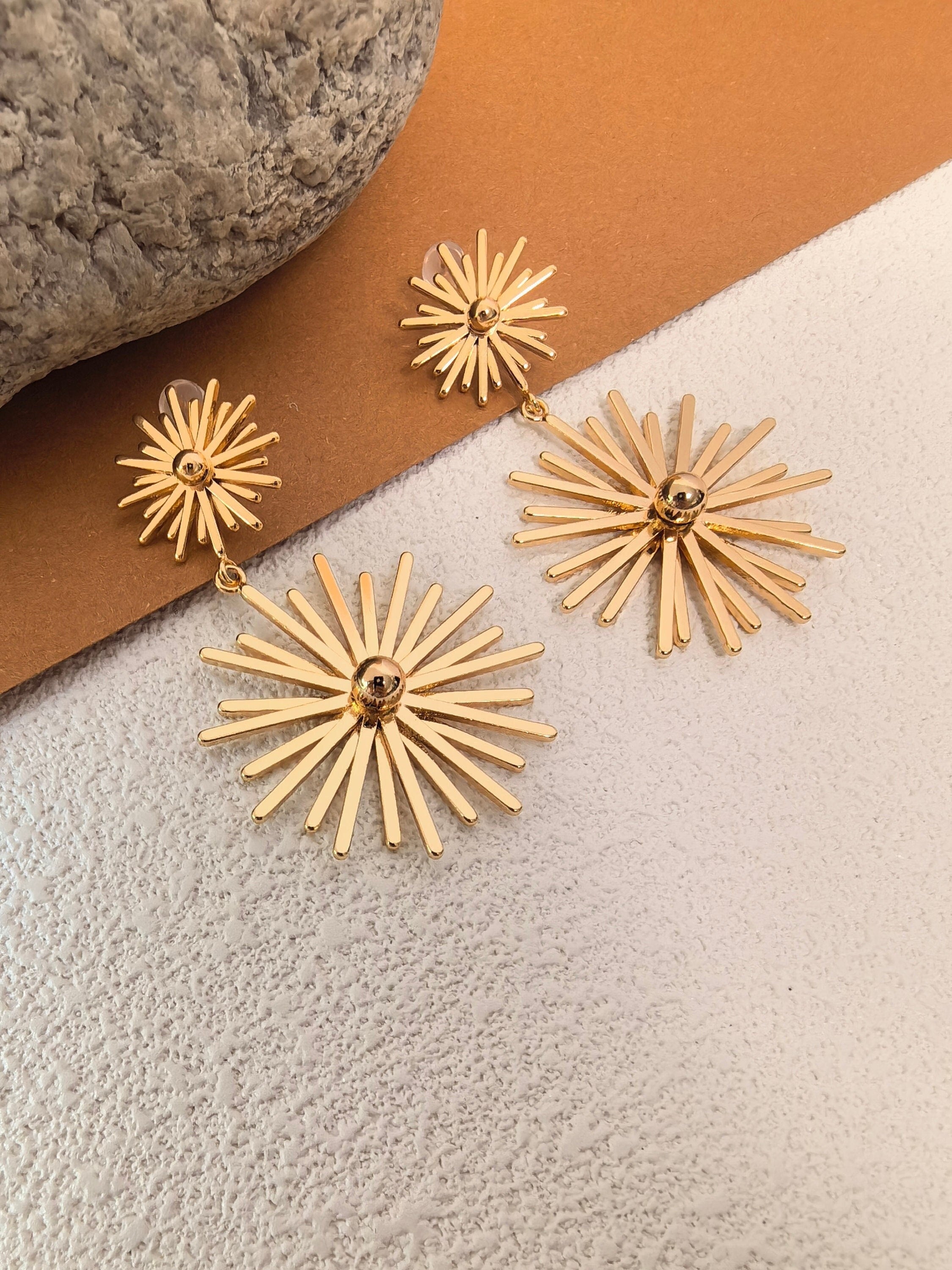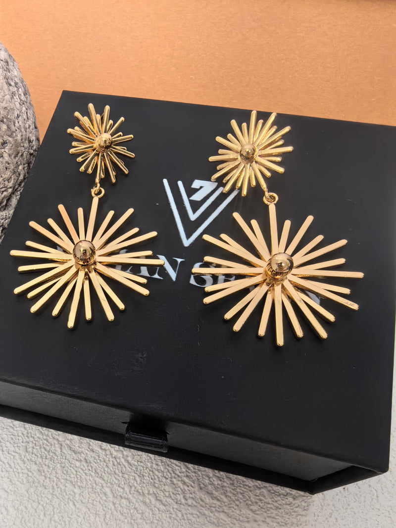 Sunburst 18K Gold Plate Drop Statement Earrings