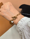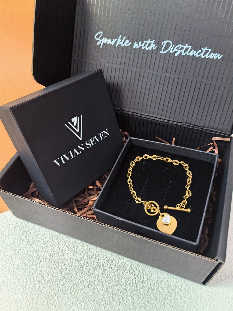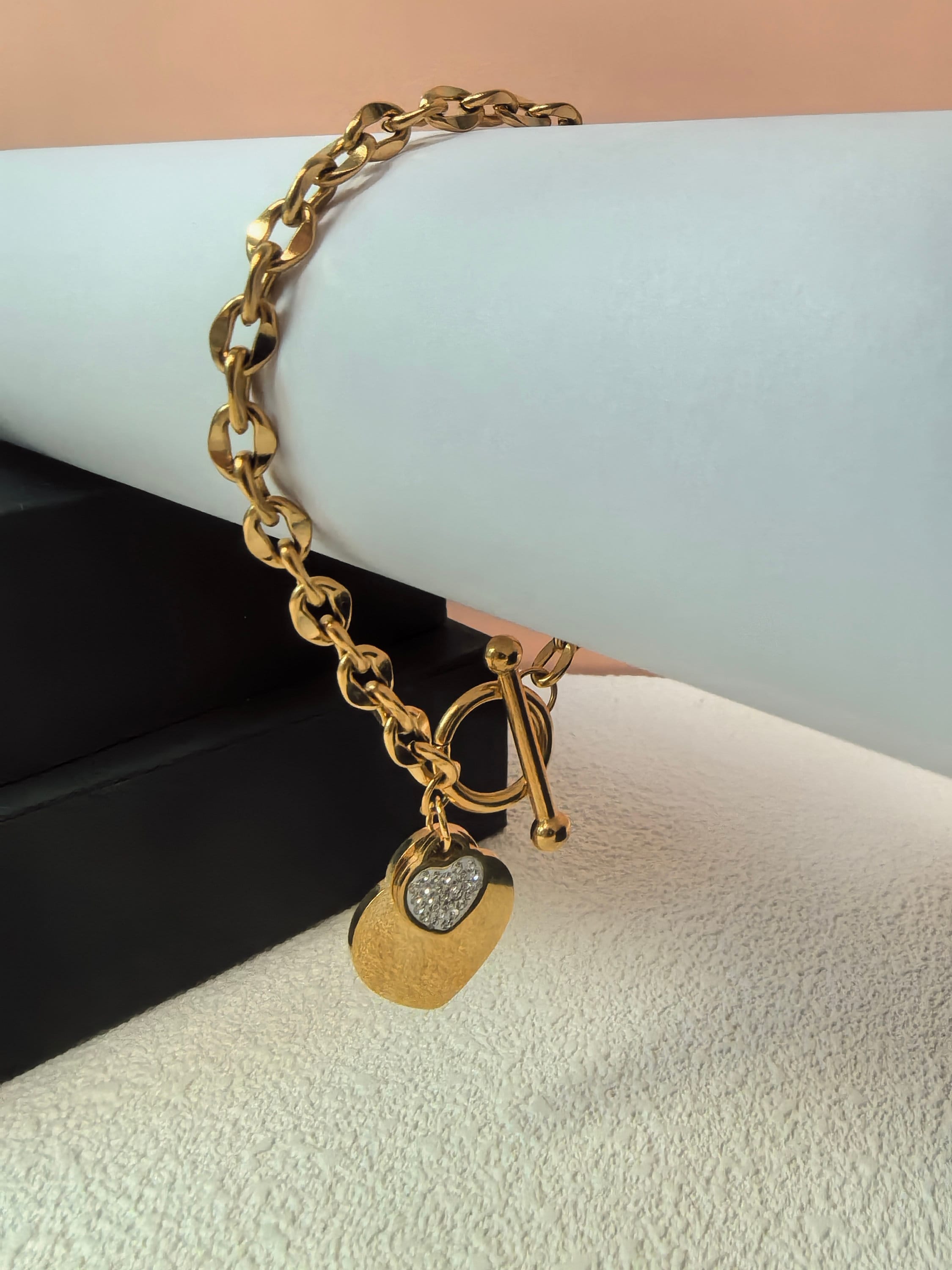 Add a touch of love to any outfit with our Rhinestone Heart Charm Bracelet! Made with durable titanium steel and accented with 18k-gold plating, this bracelet features charming heart charms and an easy-to-use toggle closure. Elevate your style and showcase your affection with this beautiful accessory!
