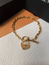 Titanium Steel Chain Link Rhinestone Love Heart Charm Toggle Bracelet