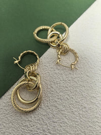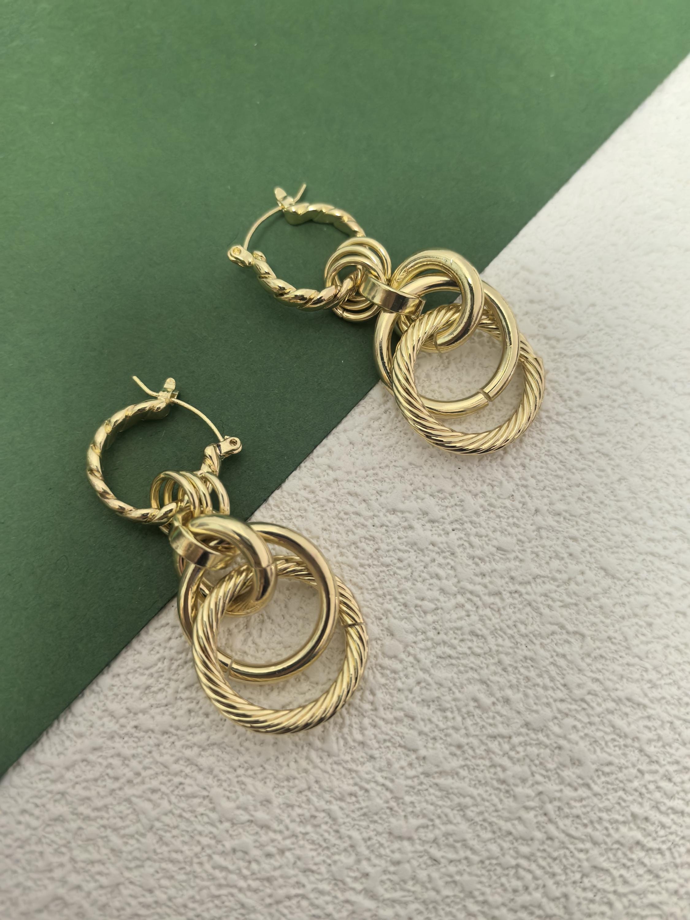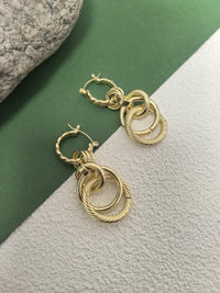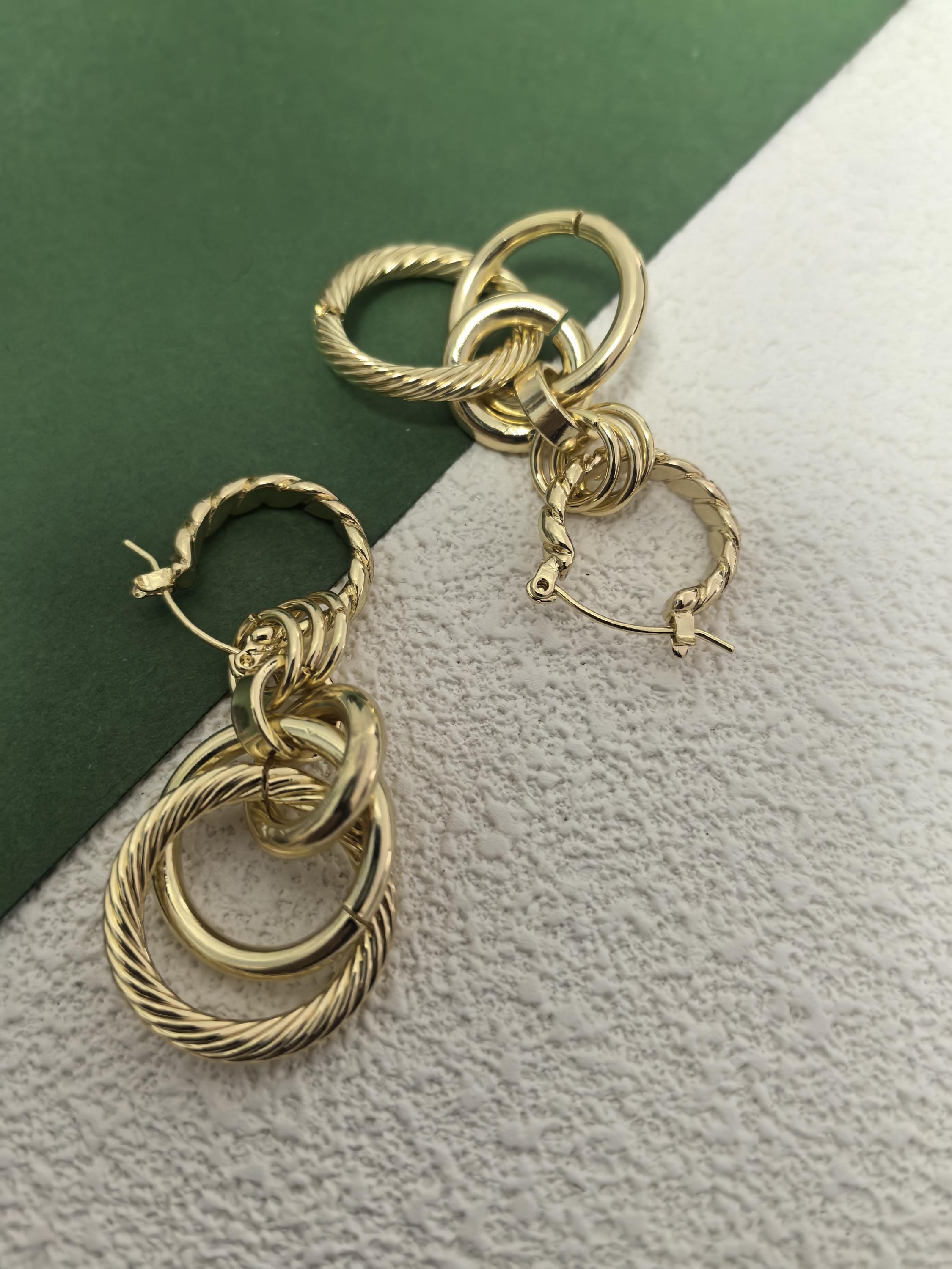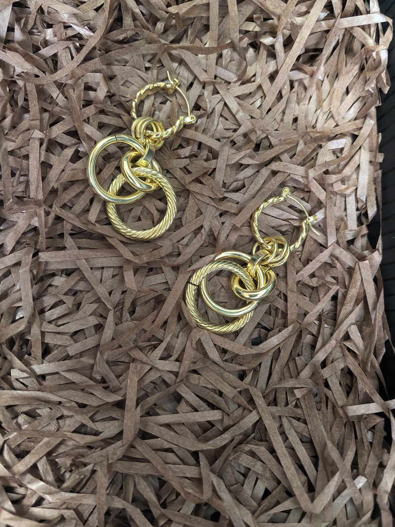 Sparkle and shine with our women's multi-hoop drop earrings! These goldtone earrings feature interlocking hoops for a modern and dramatic allure. Elevate your style with our women's jewelry.