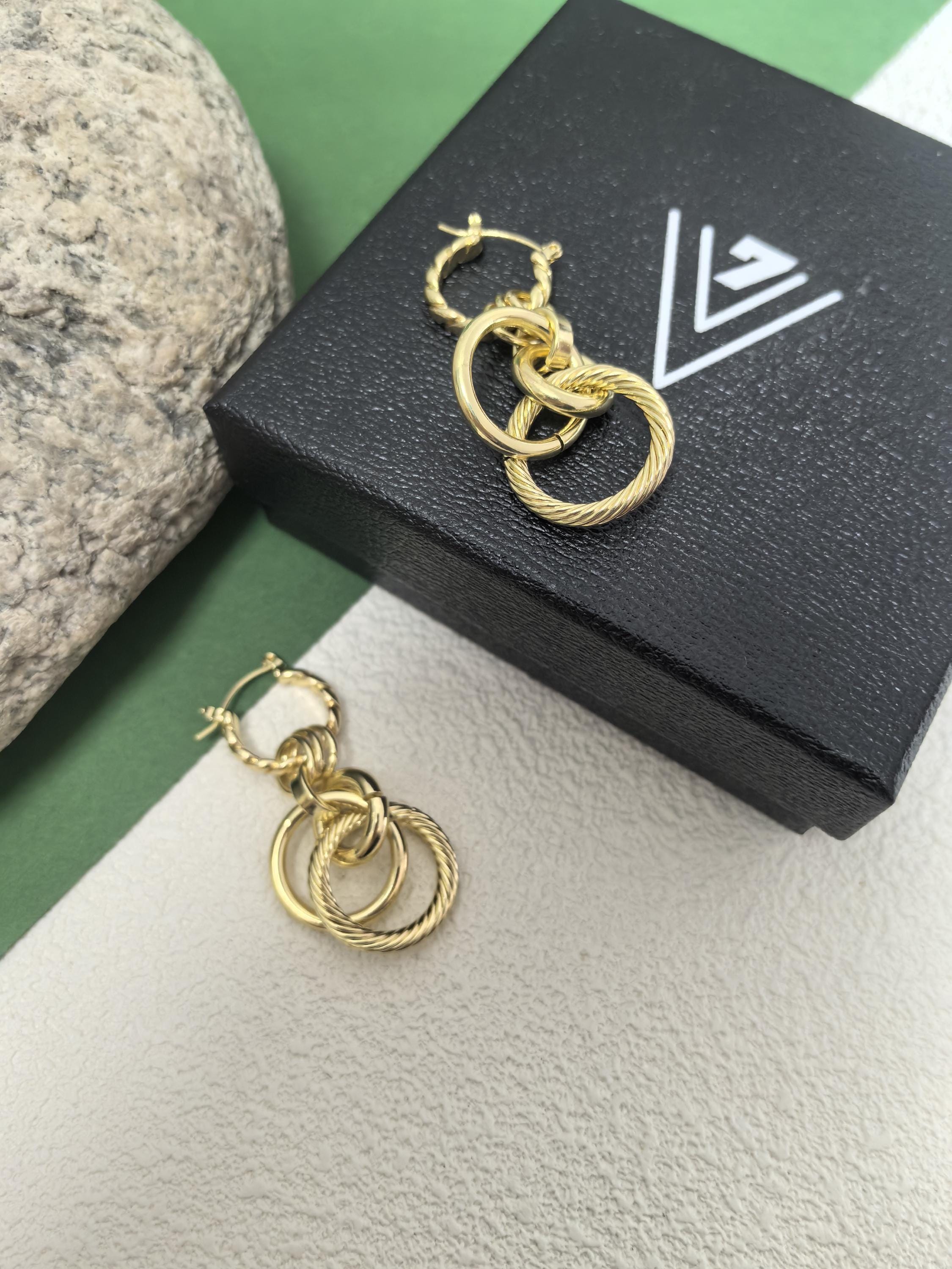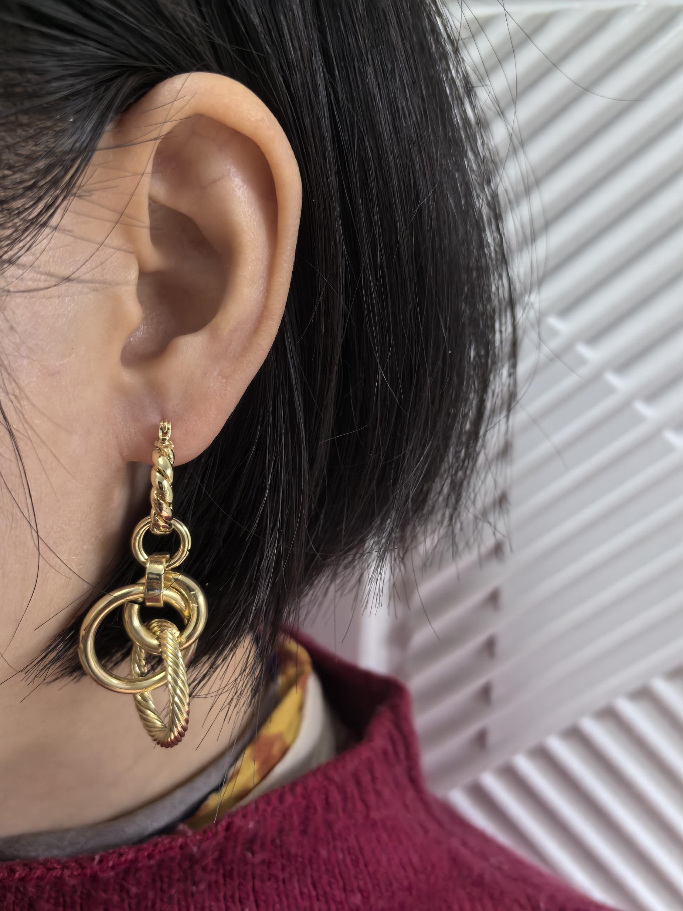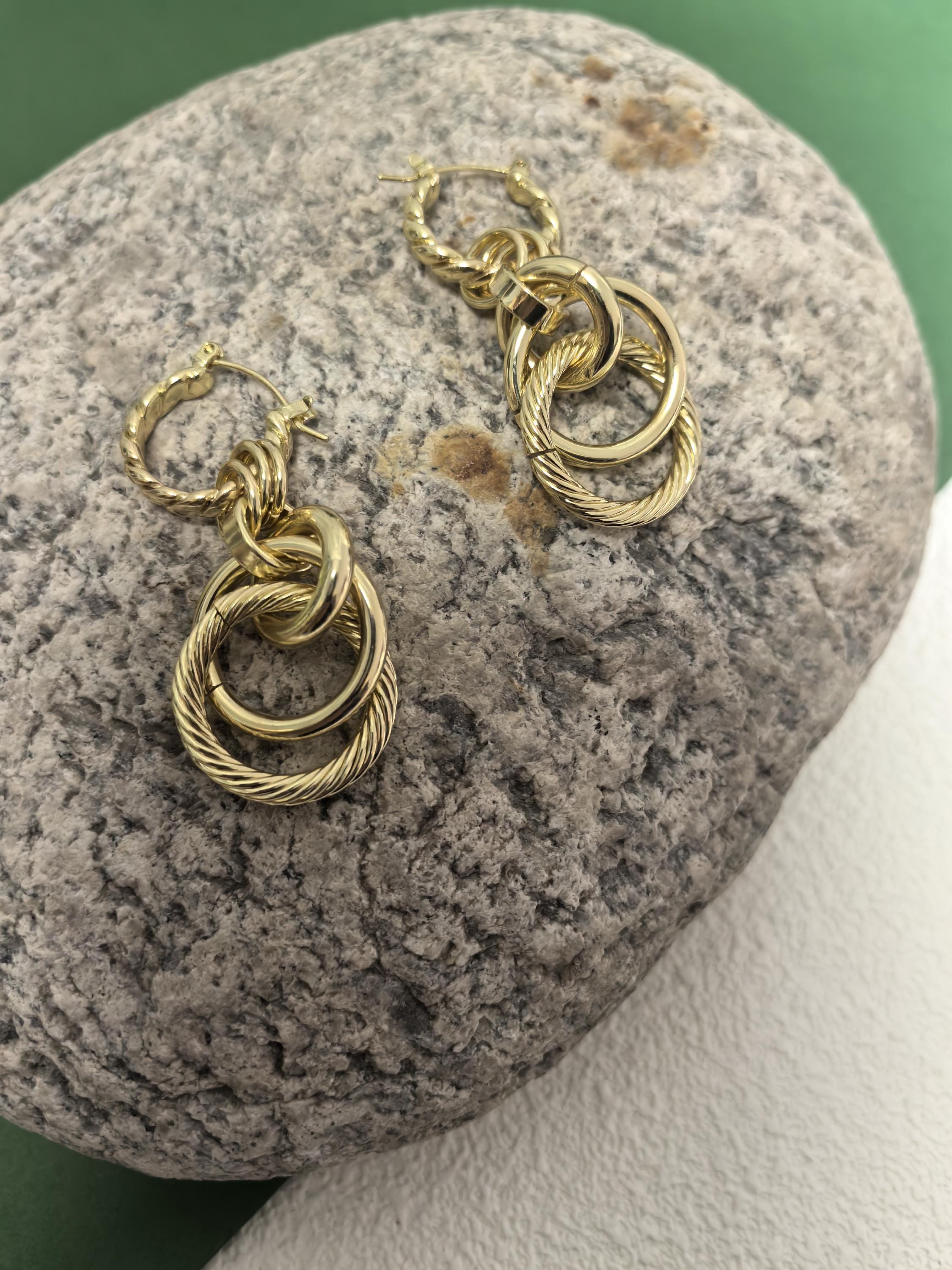 Sparkle and shine with our women's multi-hoop drop earrings! These goldtone earrings feature interlocking hoops for a modern and dramatic allure. Elevate your style with our women's jewelry.