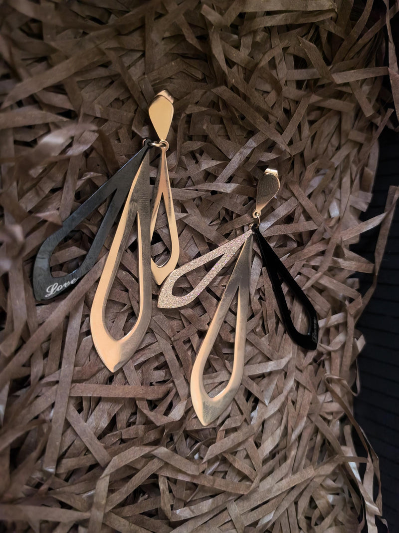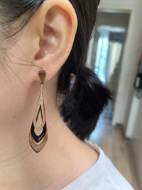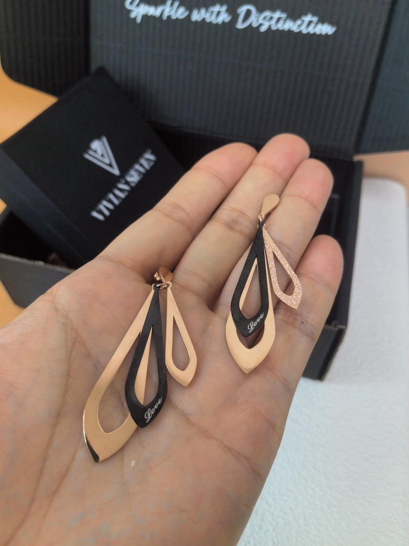 Elevate your style with our stunning drop earrings. Crafted with precision from titanium steel in a luxurious rose gold and black color, these linear statement earrings make a bold statement. Perfect for any occasion, these dangle earrings add a touch of sophistication to any outfit.