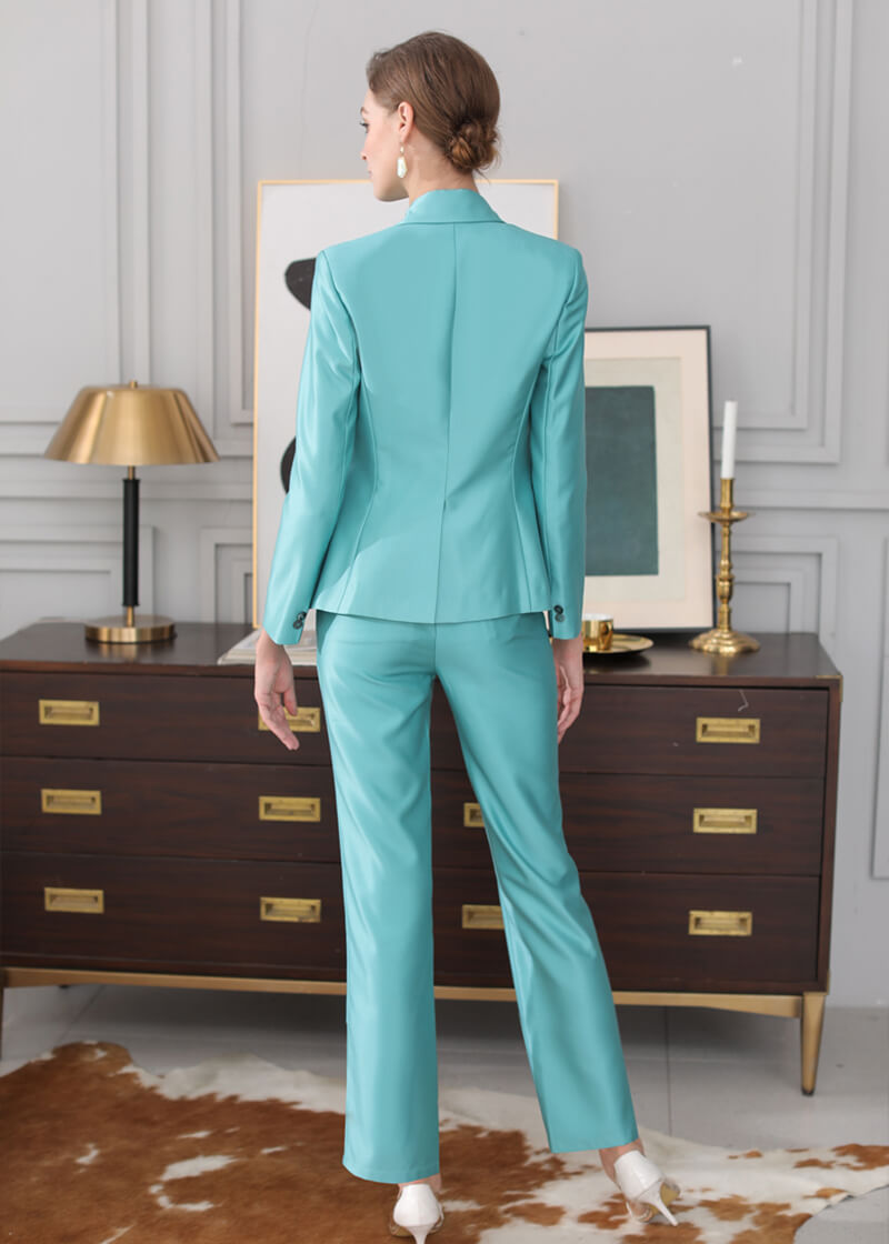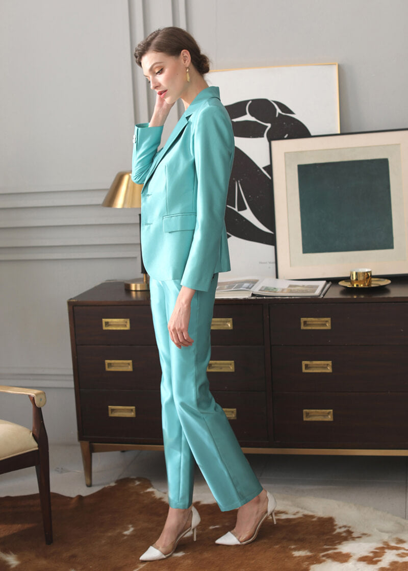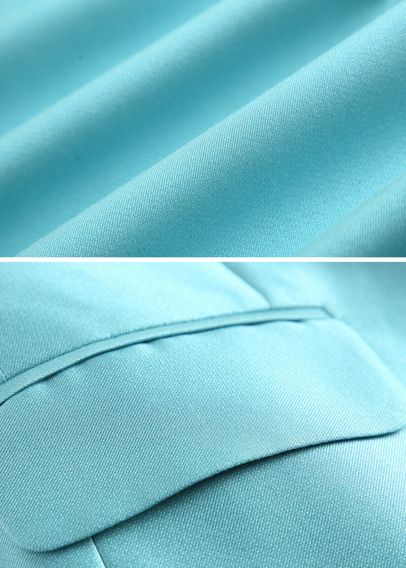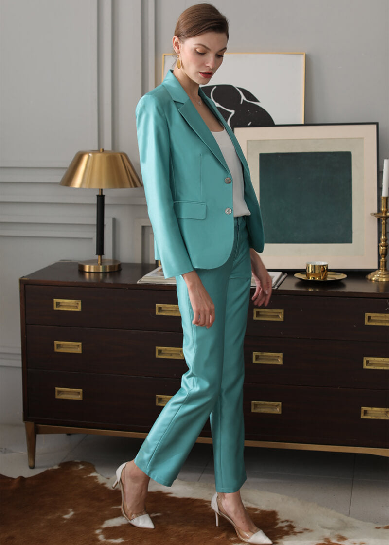 Turquoise Double Breasted Blazer & Slim Cropped Leg Pants Set