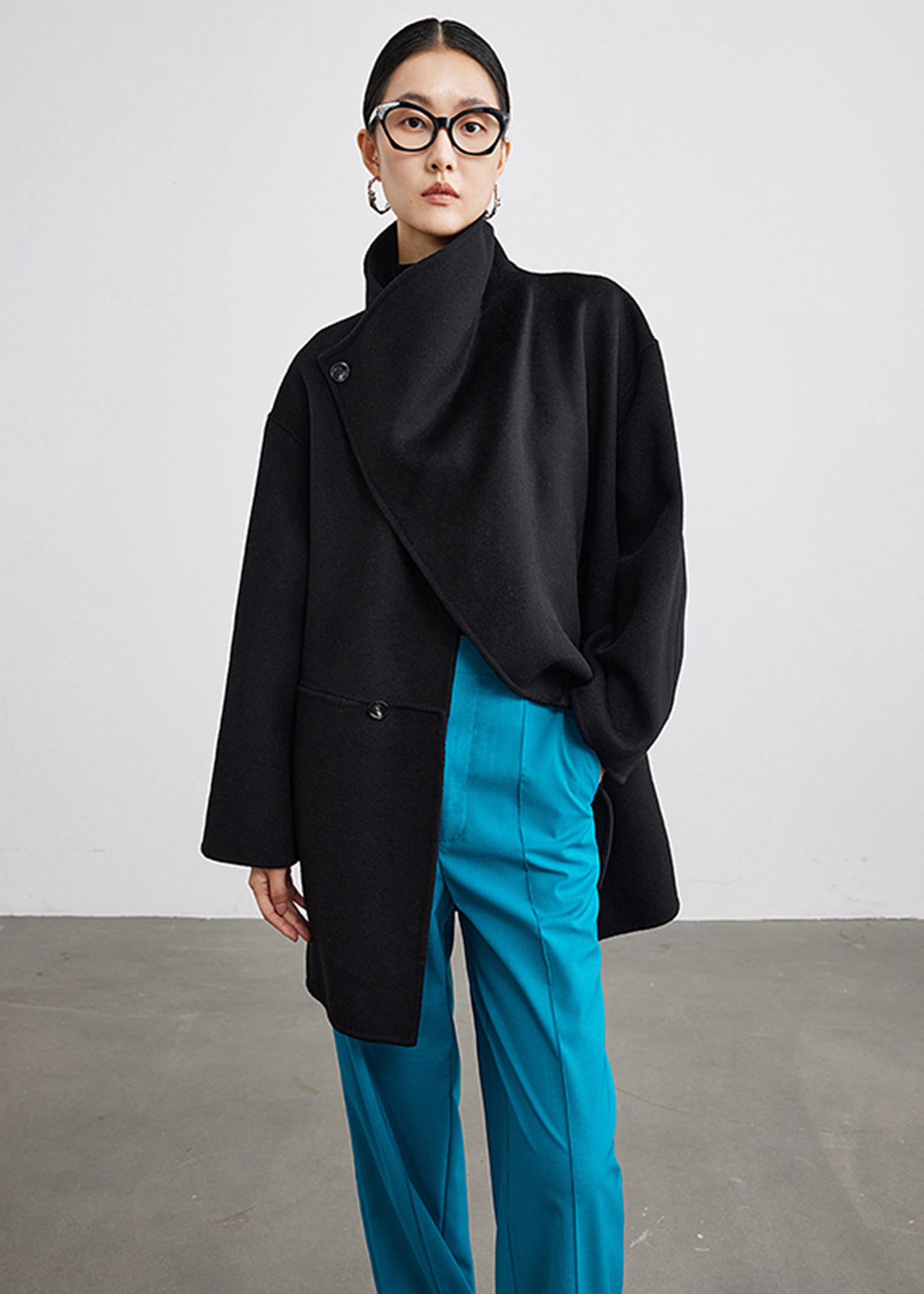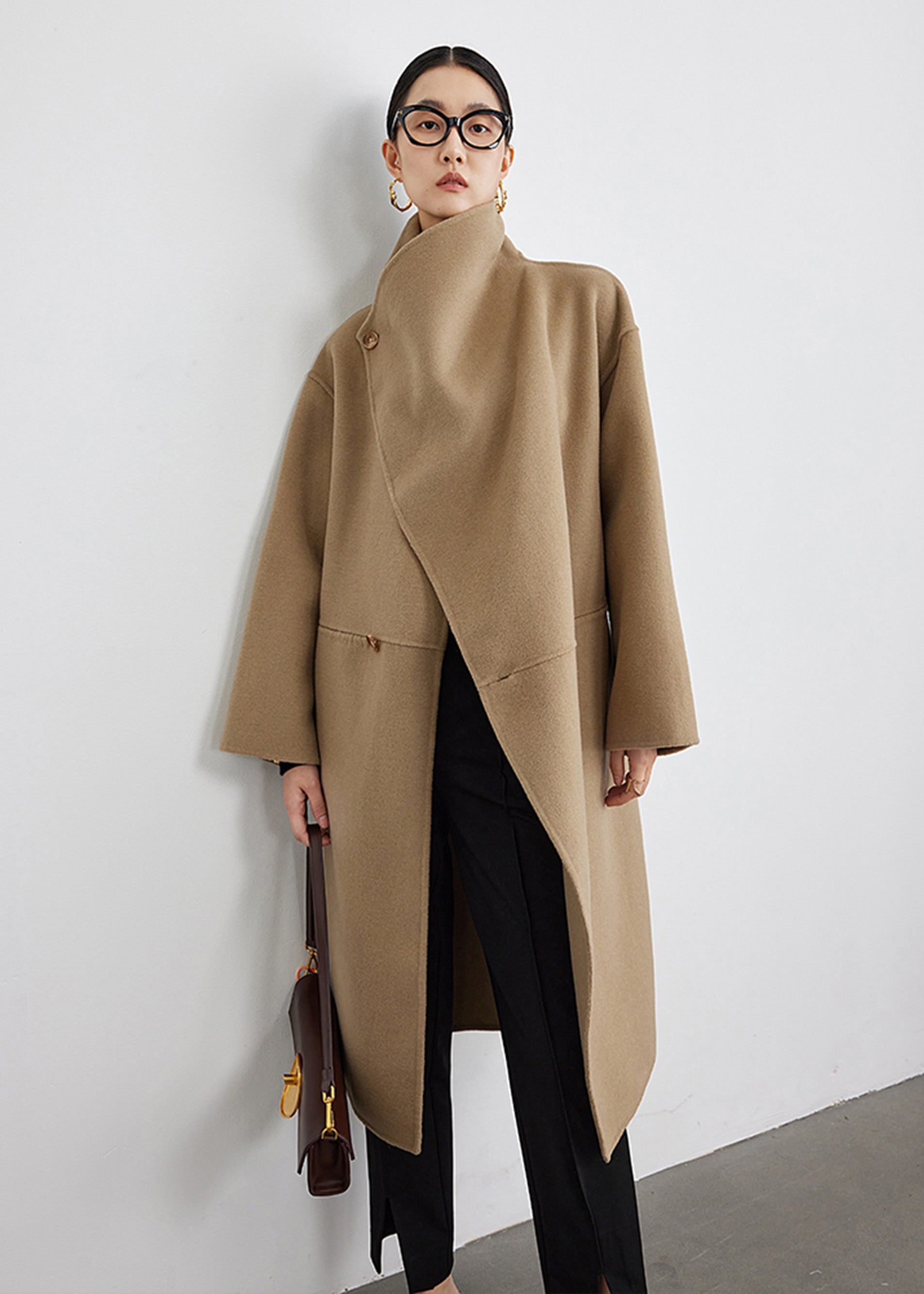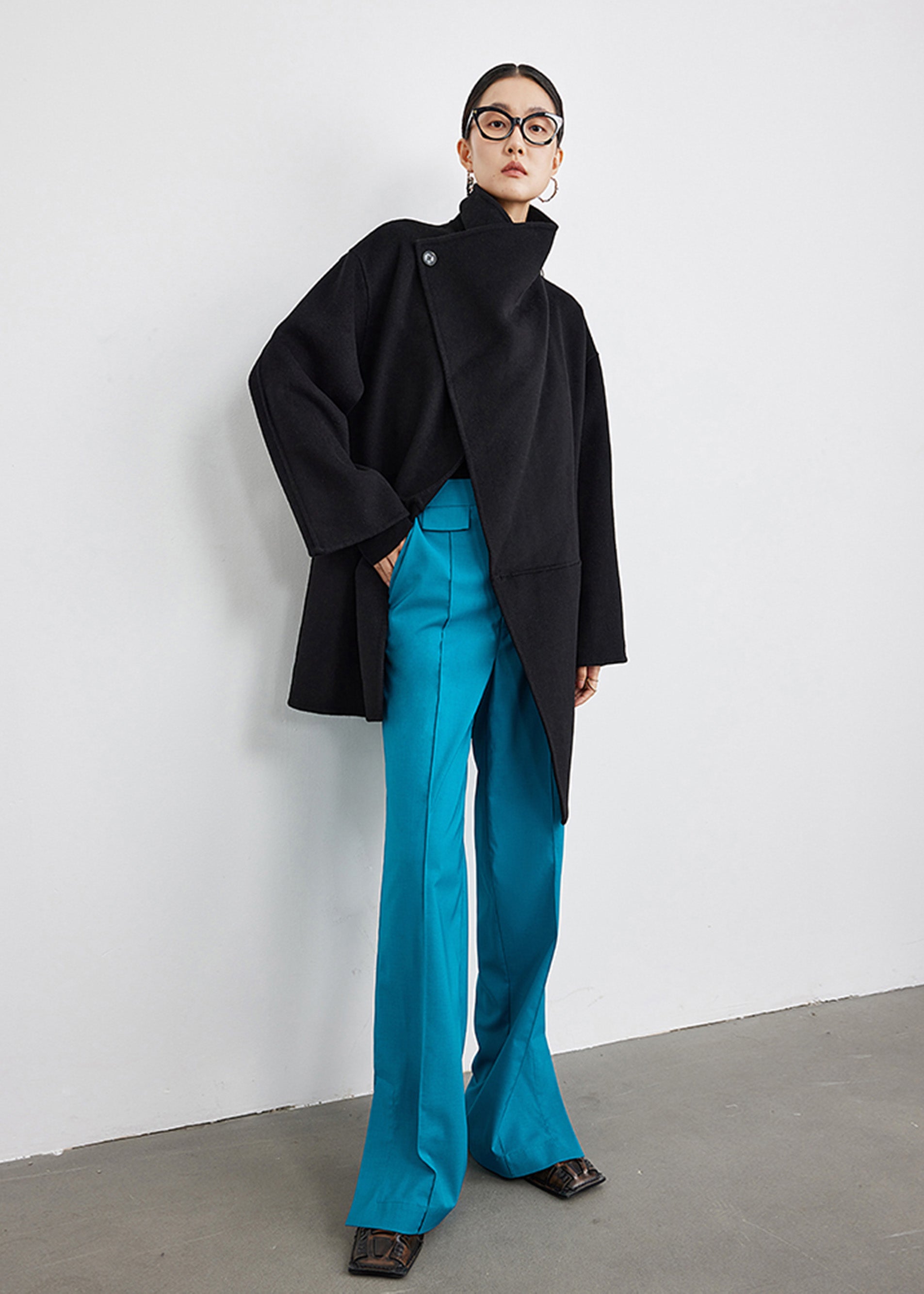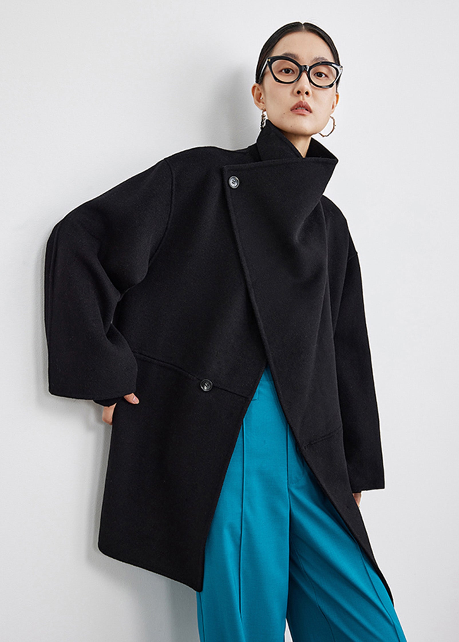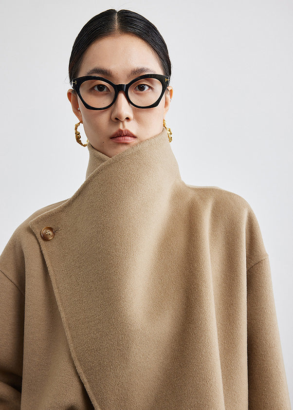 Wool Blend Spread Collar Coat