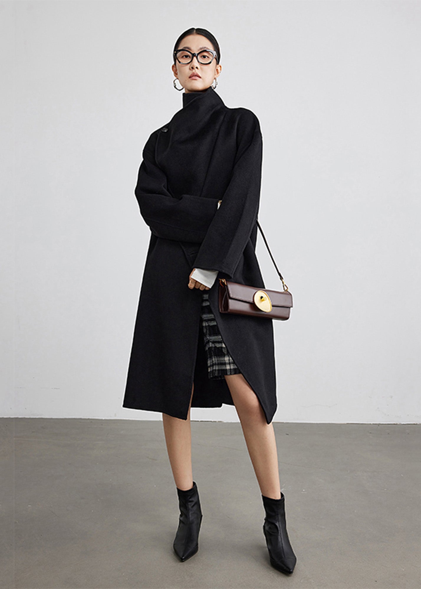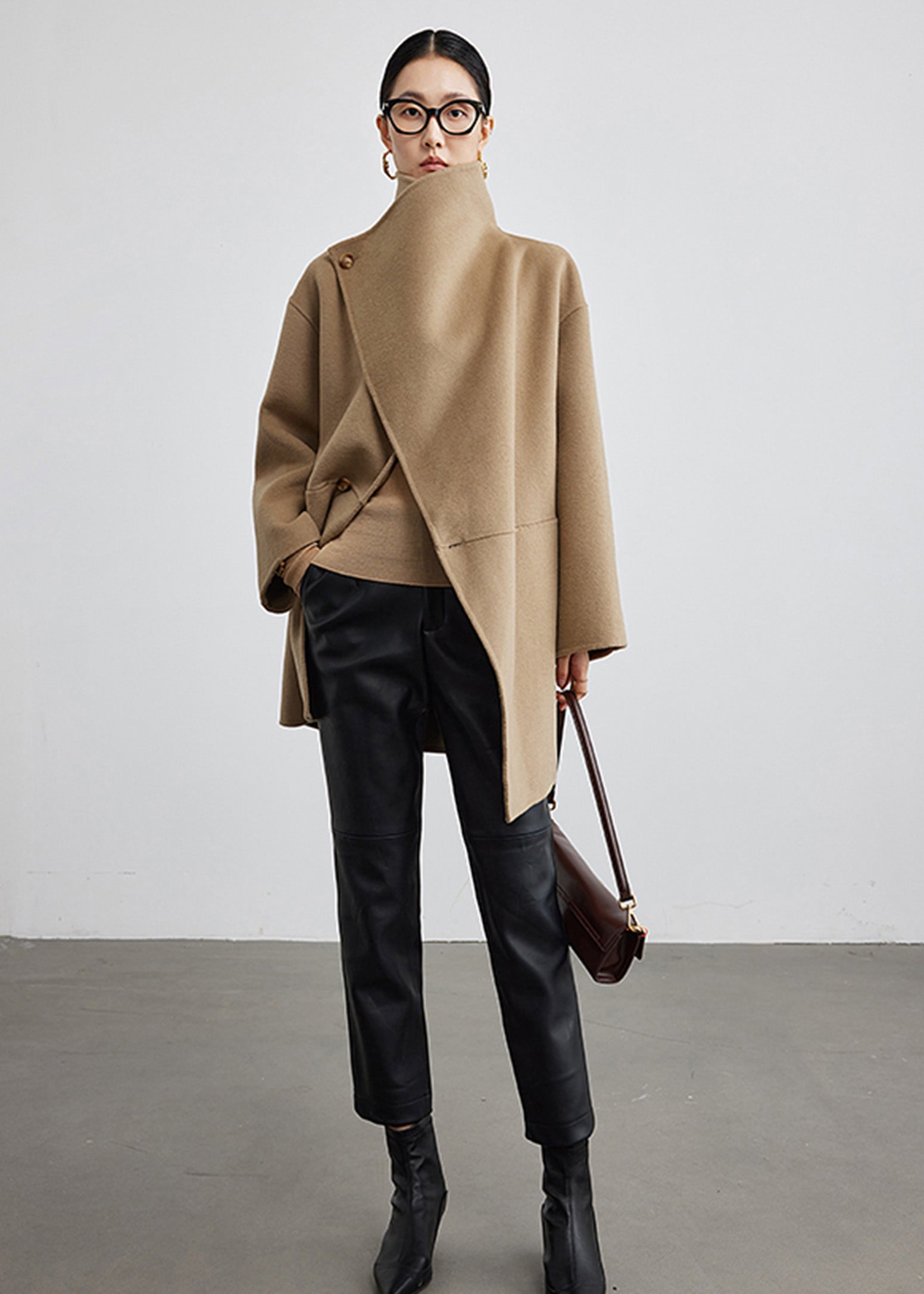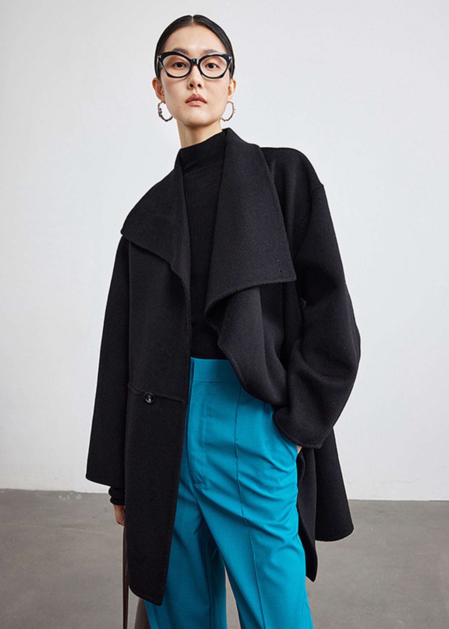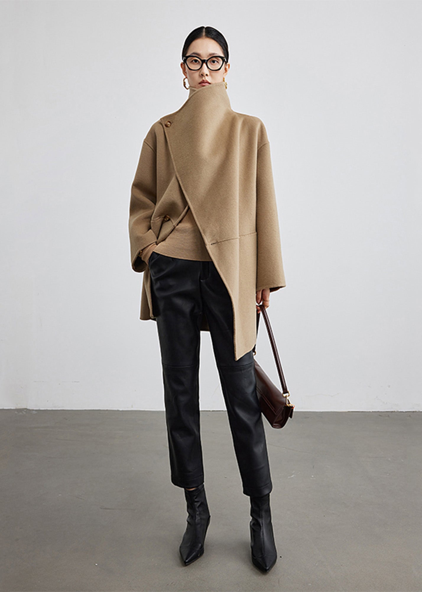 Wool Blend Spread Collar Coat