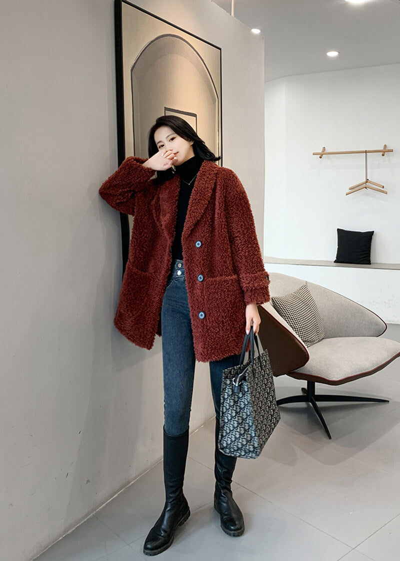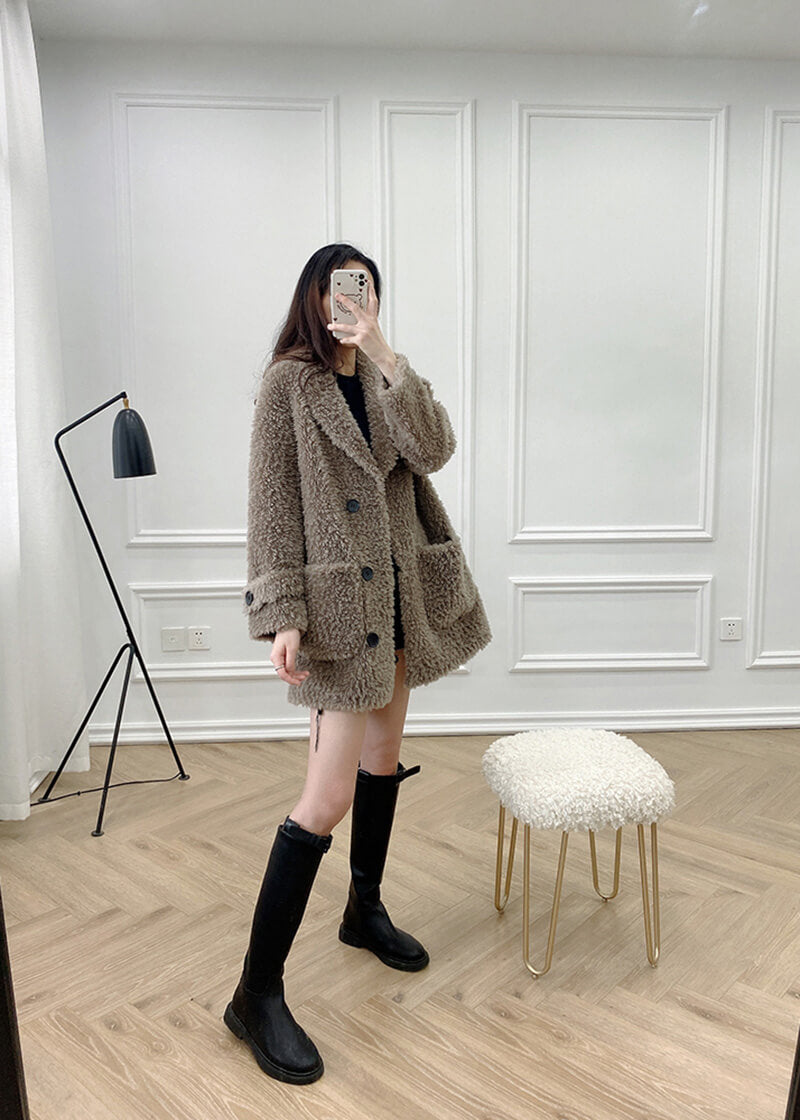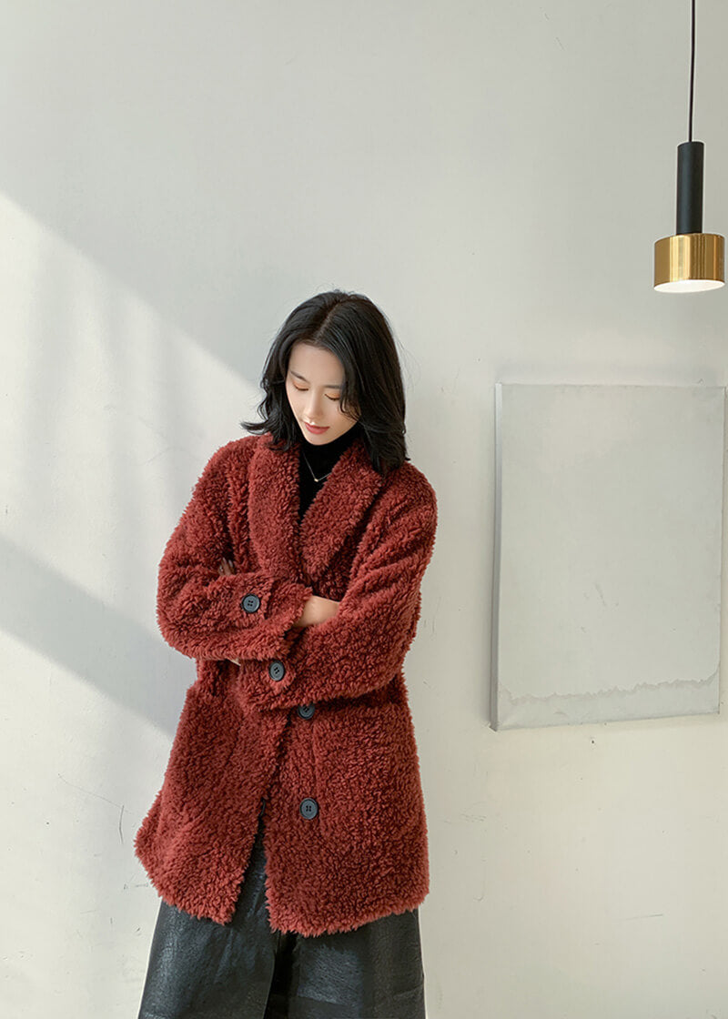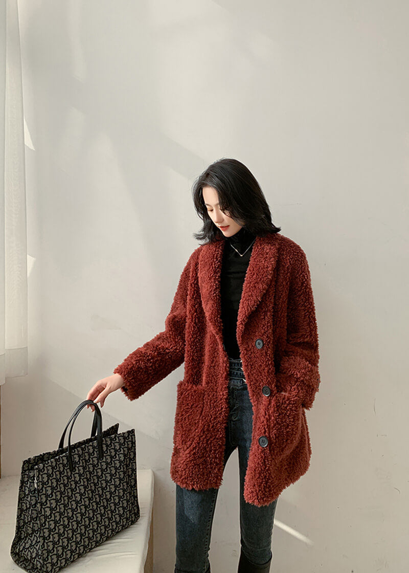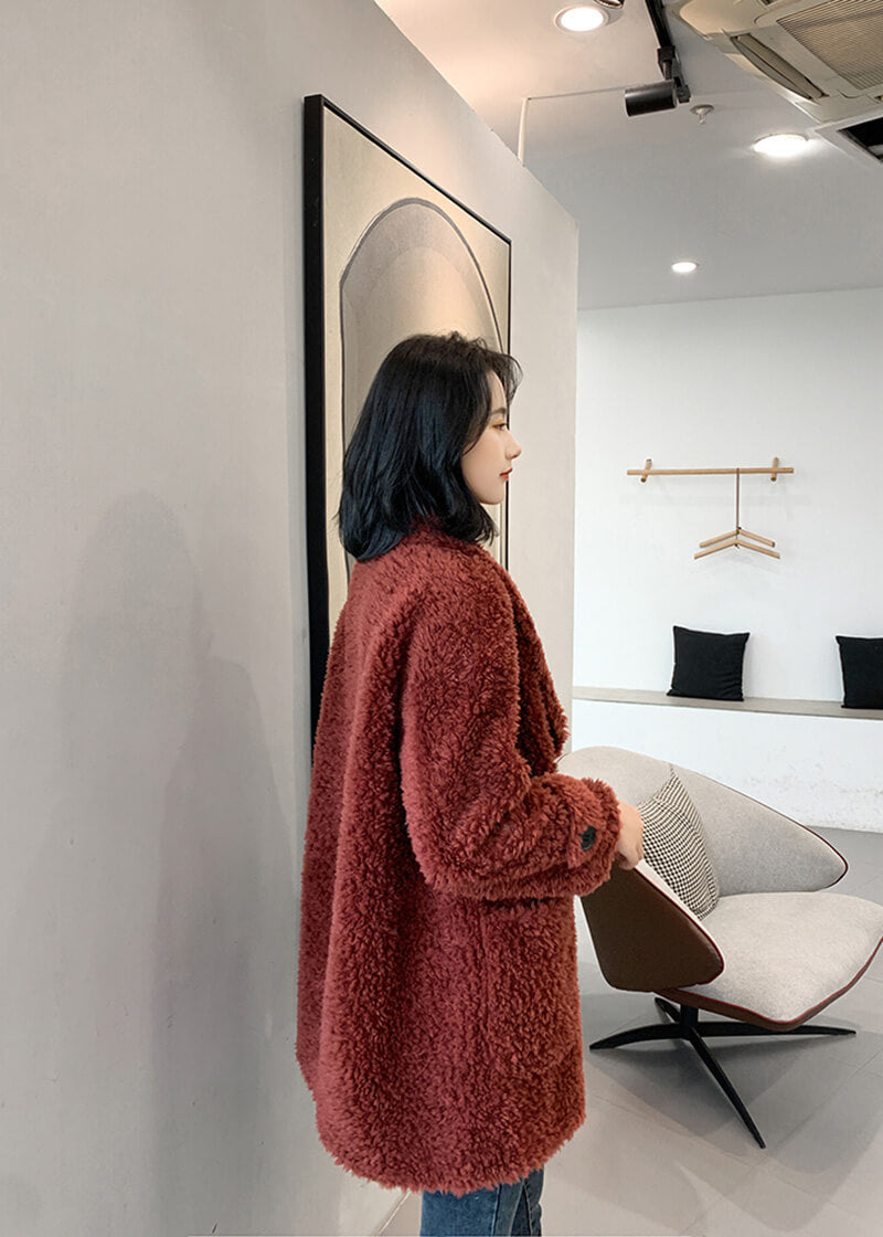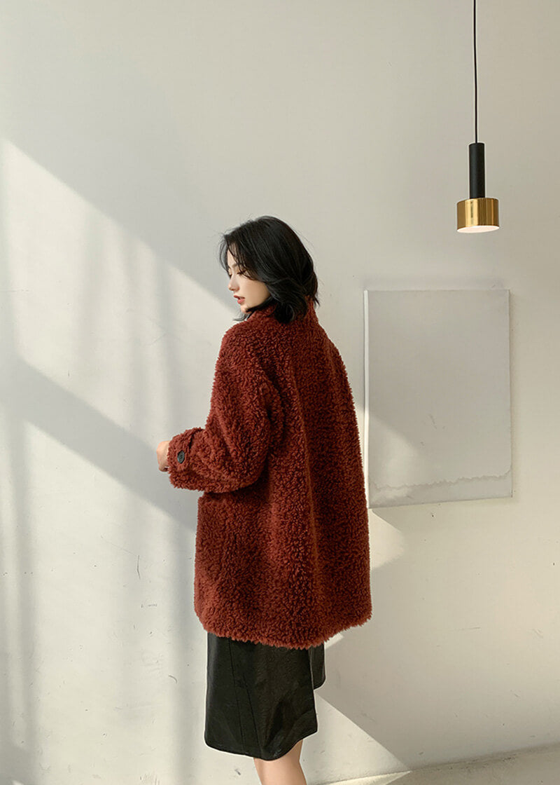 Single Breasted High Pile Fleece Lamb Wool Coat
