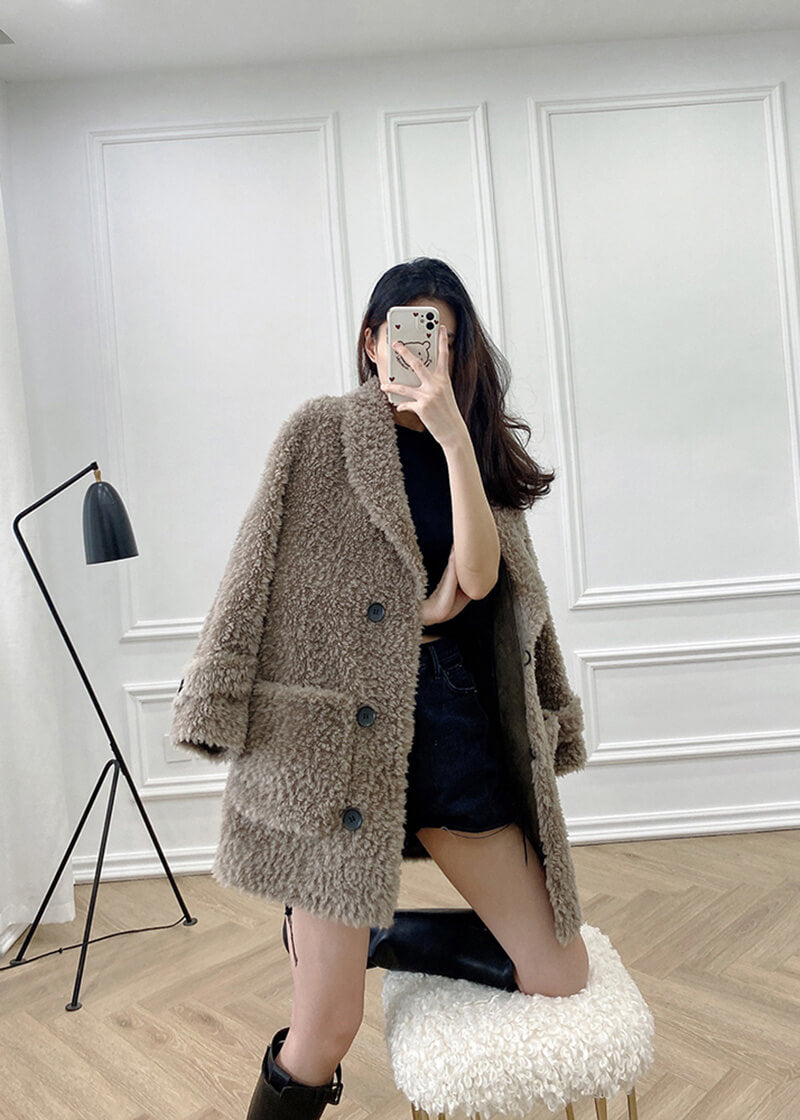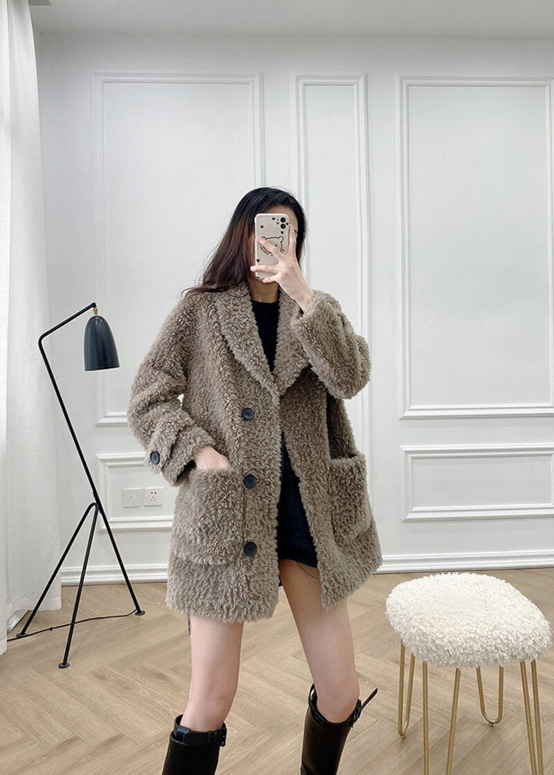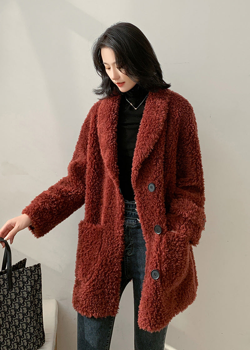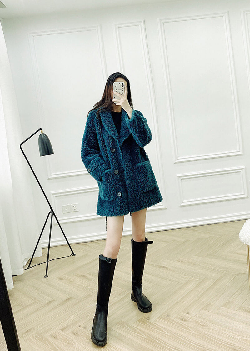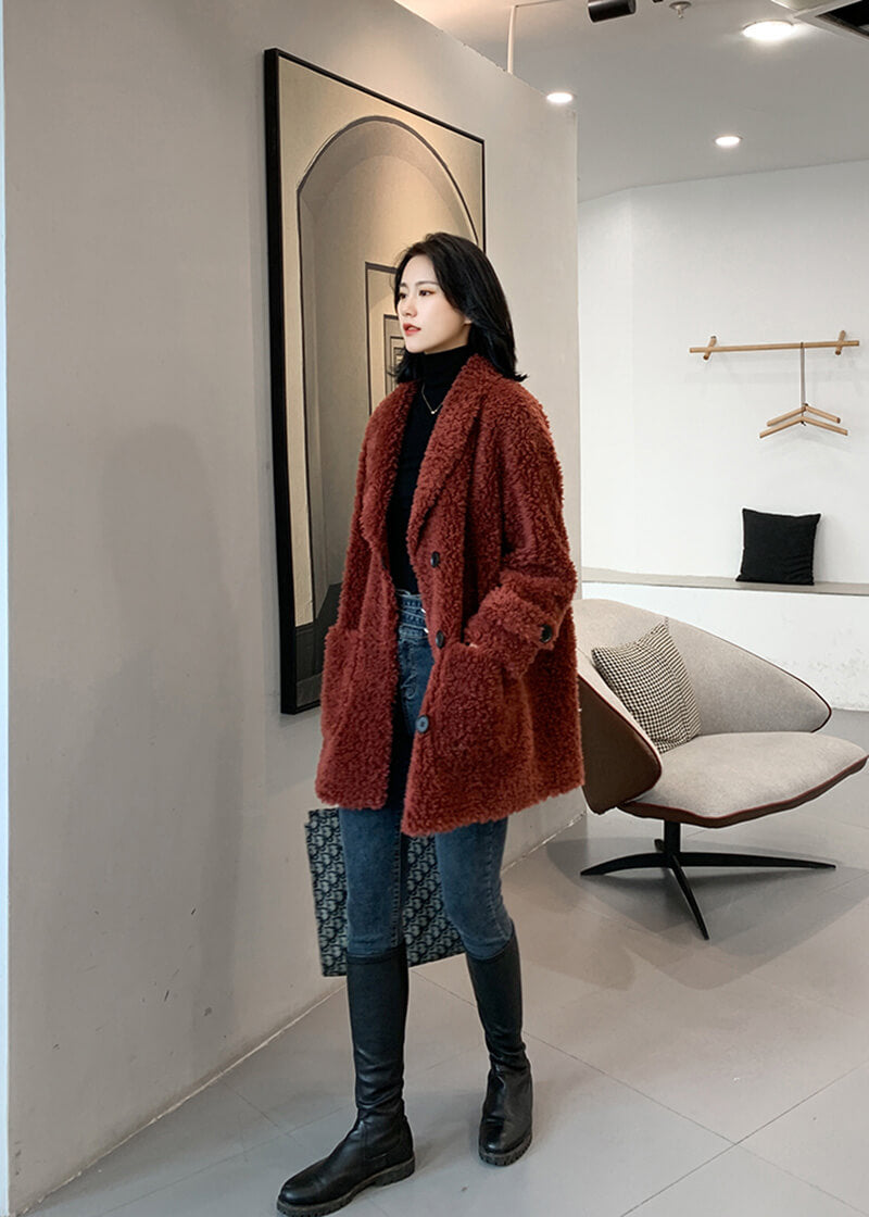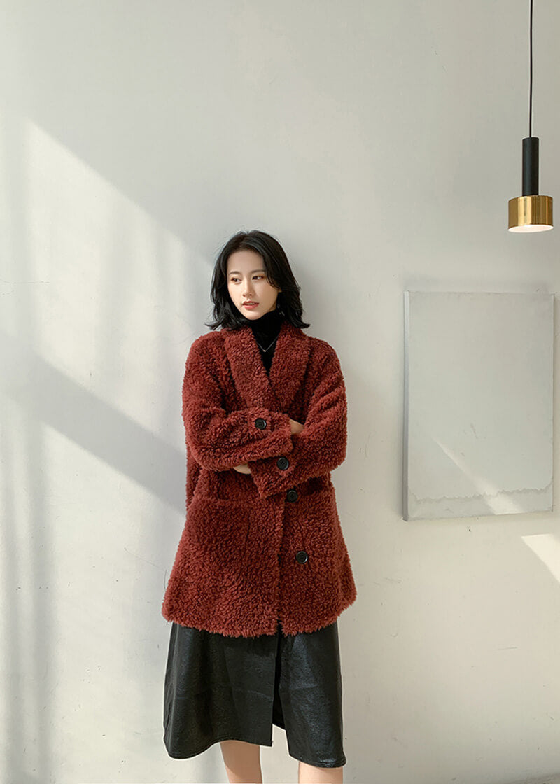 Single Breasted High Pile Fleece Lamb Wool Coat