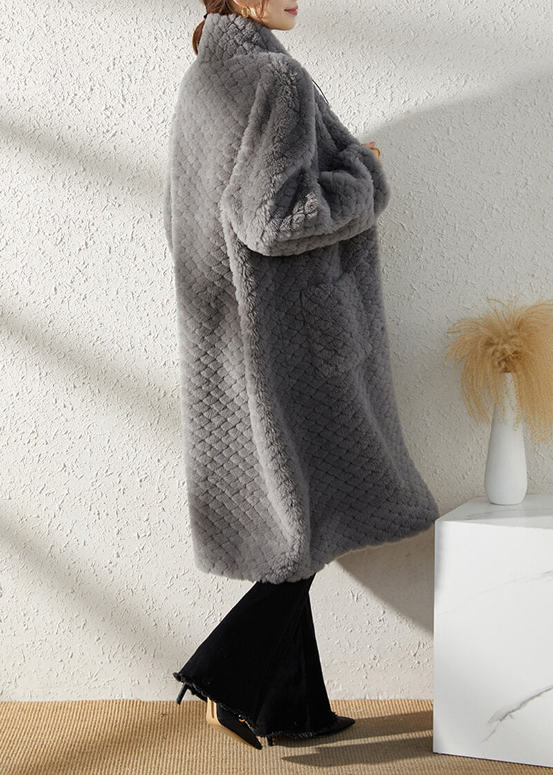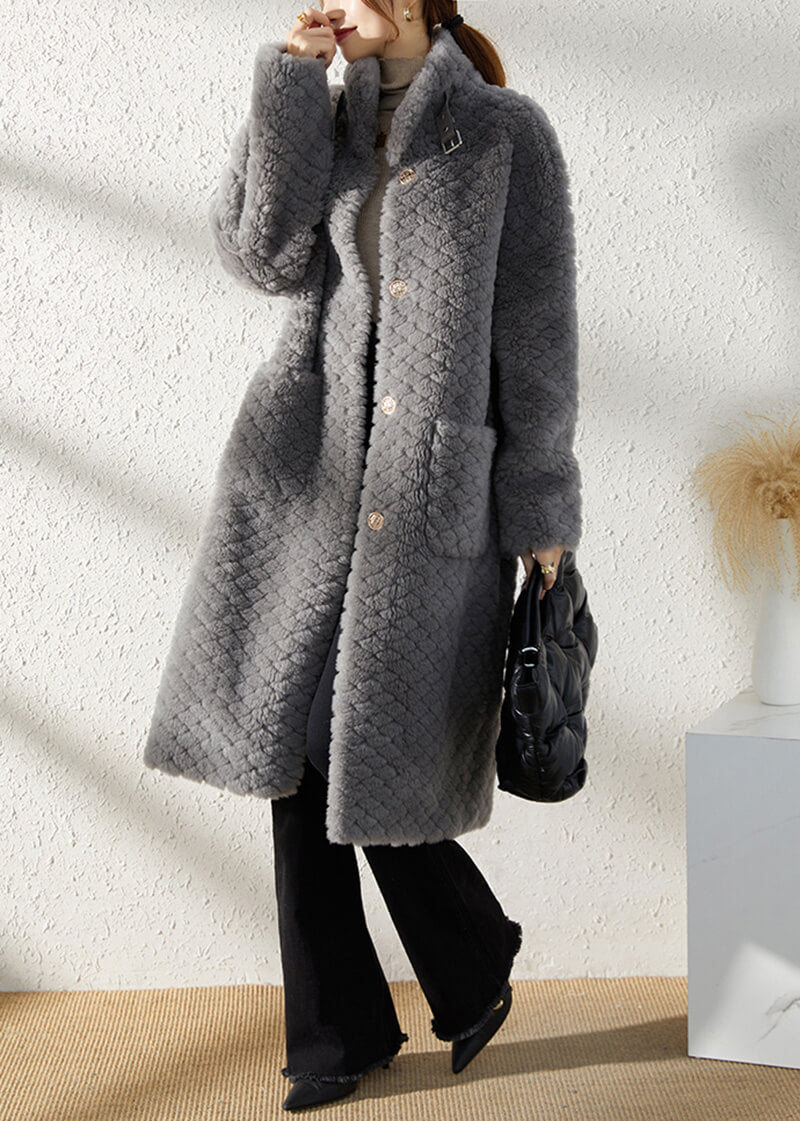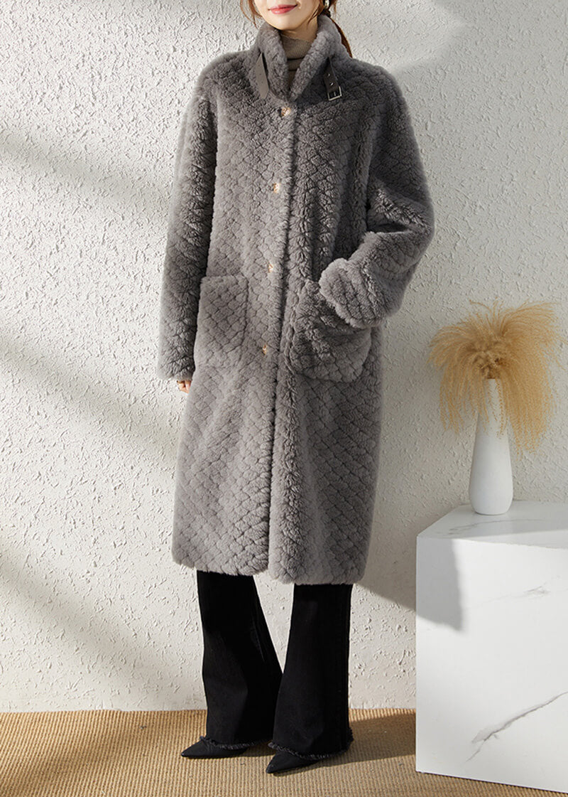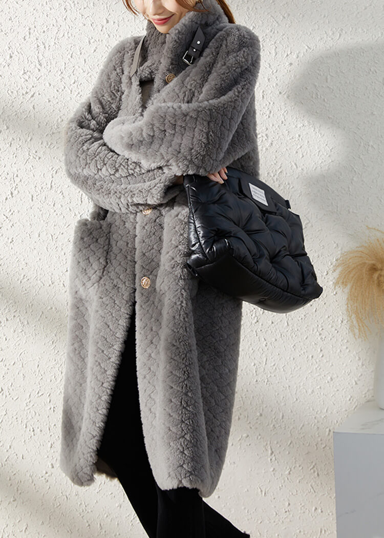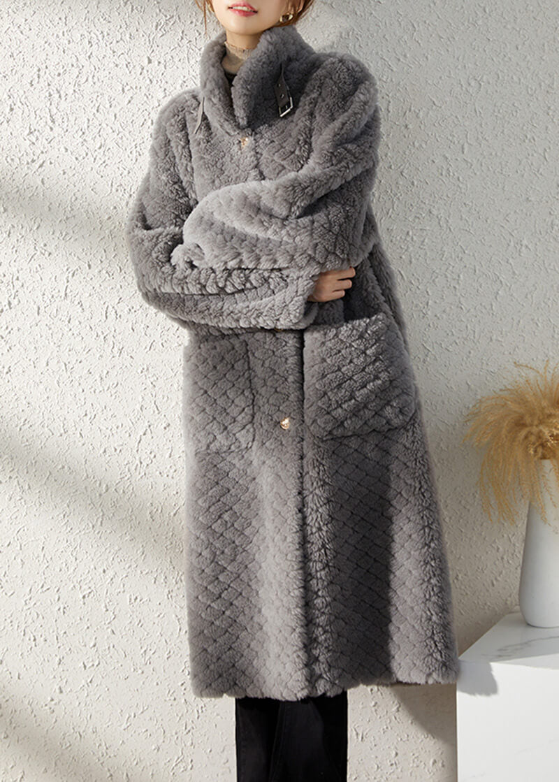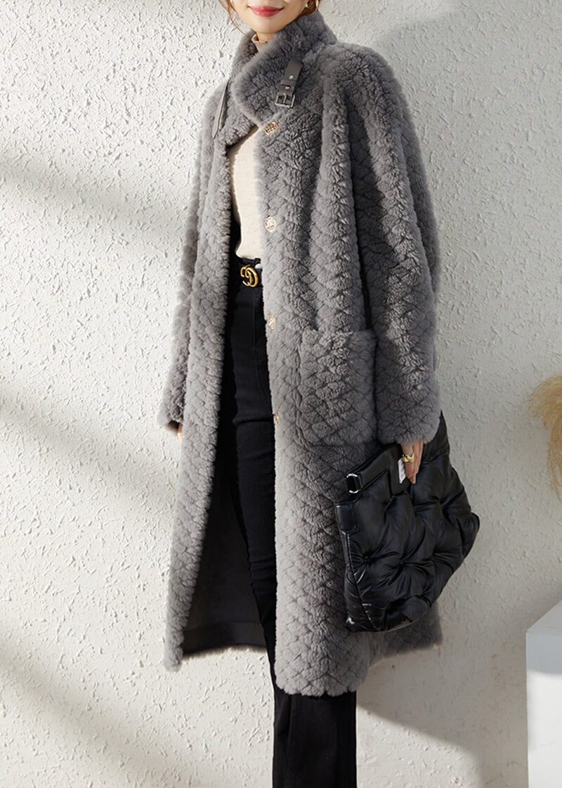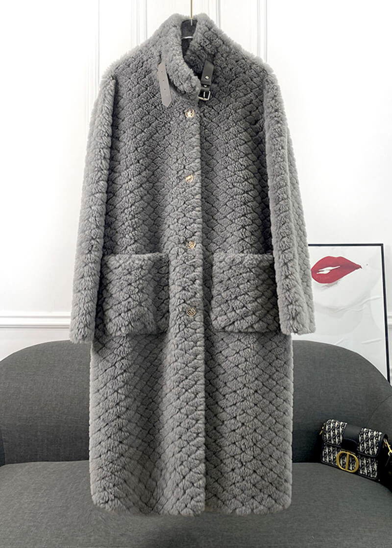 Wool and suede leather lining make this long coat a sustainable way to stay warm and look stylish.