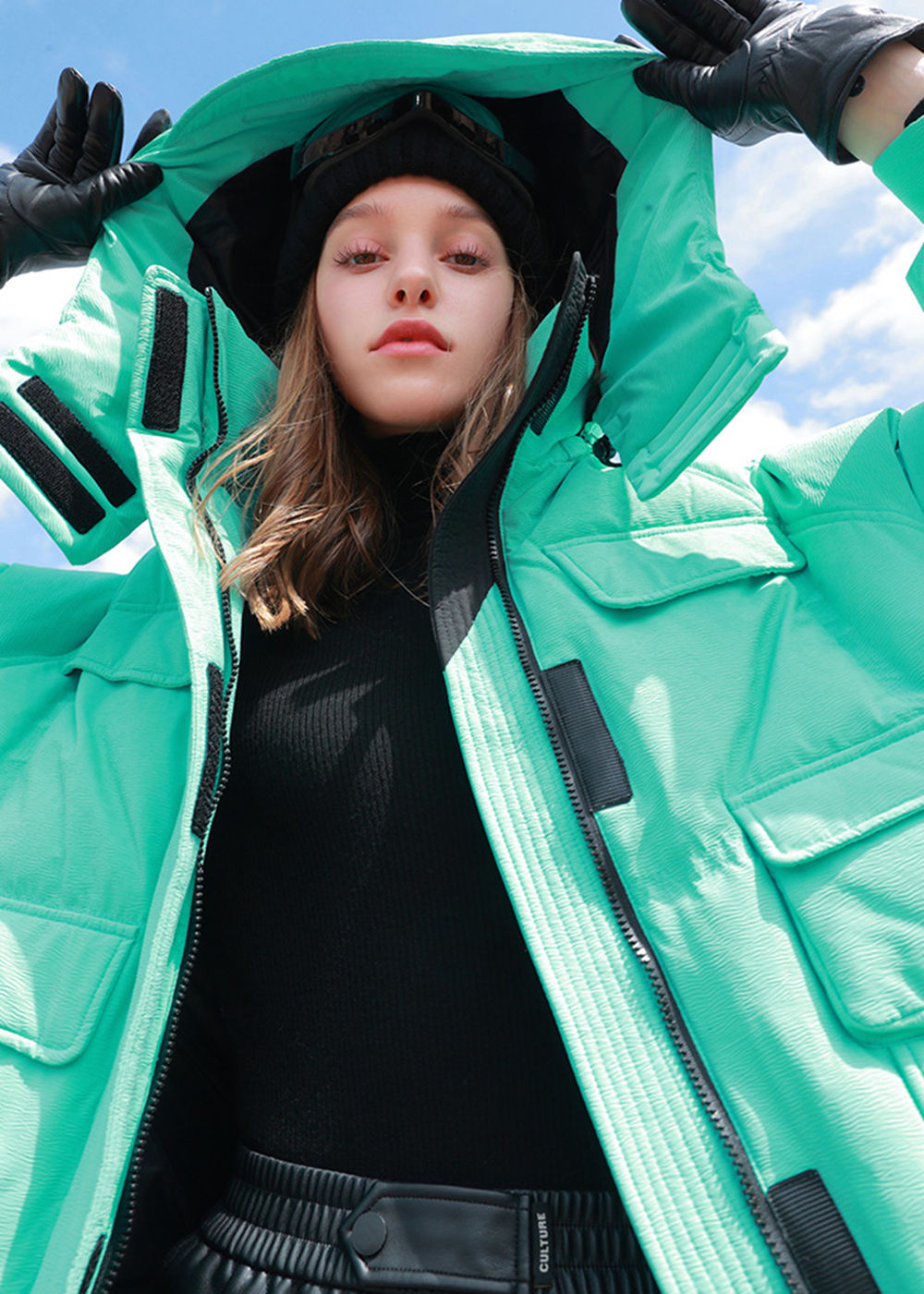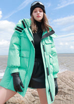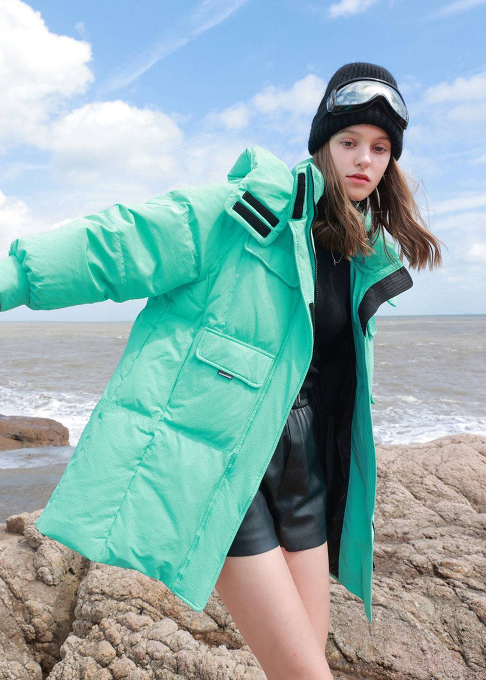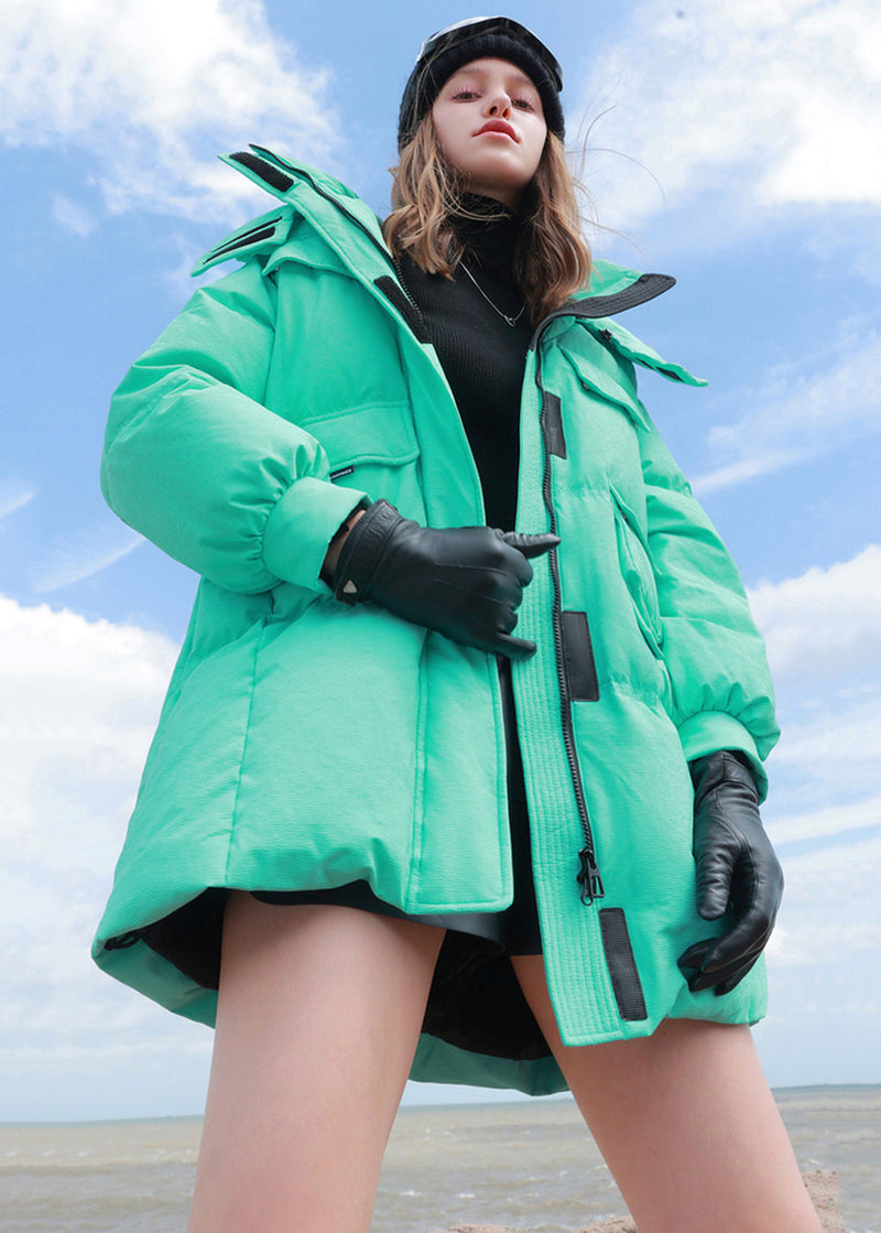 Embrace the chill in style with this hooded, green down puffer coat for women! It's perfect for braving the elements in fashionable warmth. No need to sacrifice looking great for comfort—this coat has both! #hotstuff 🔥