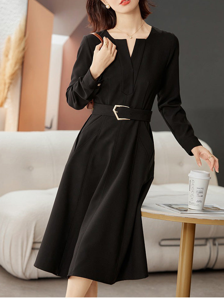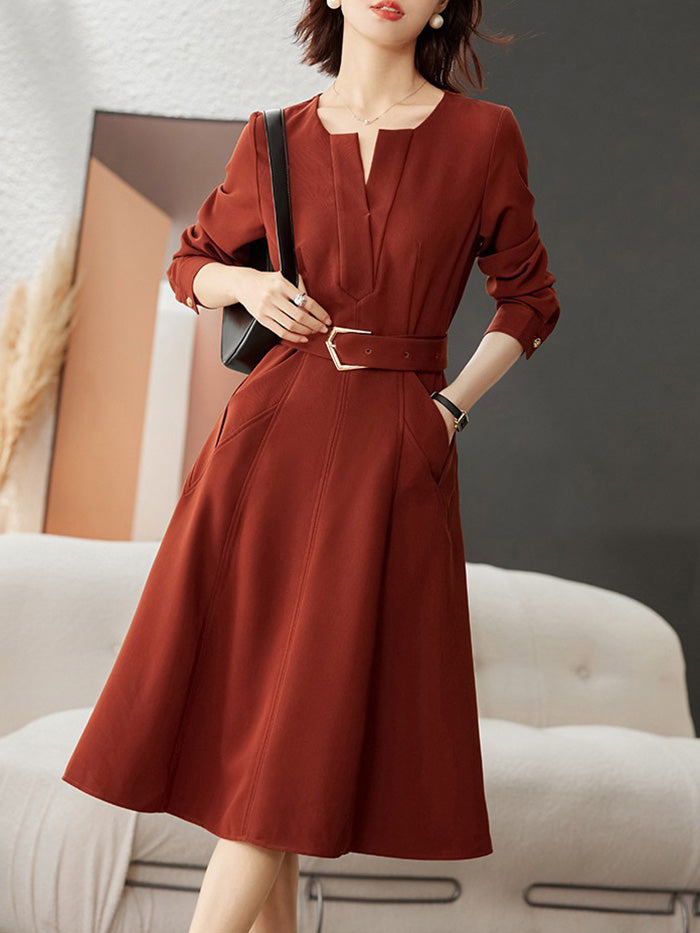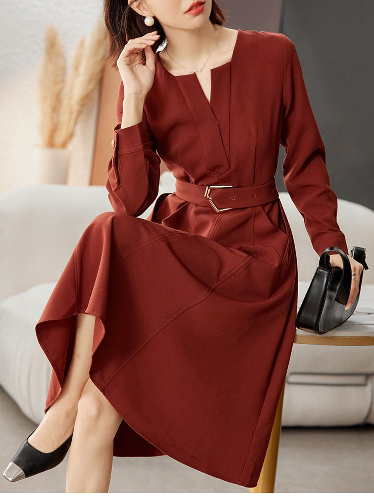 Long Sleeve Belted Dress