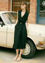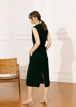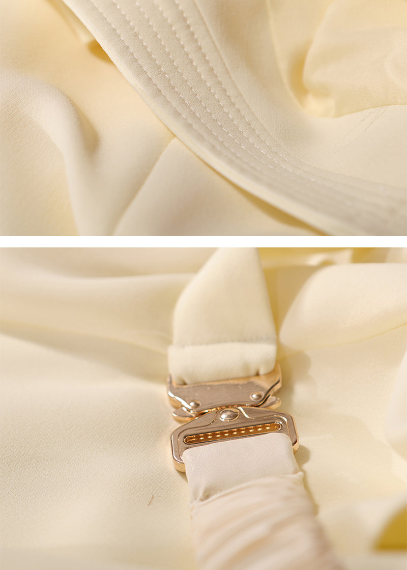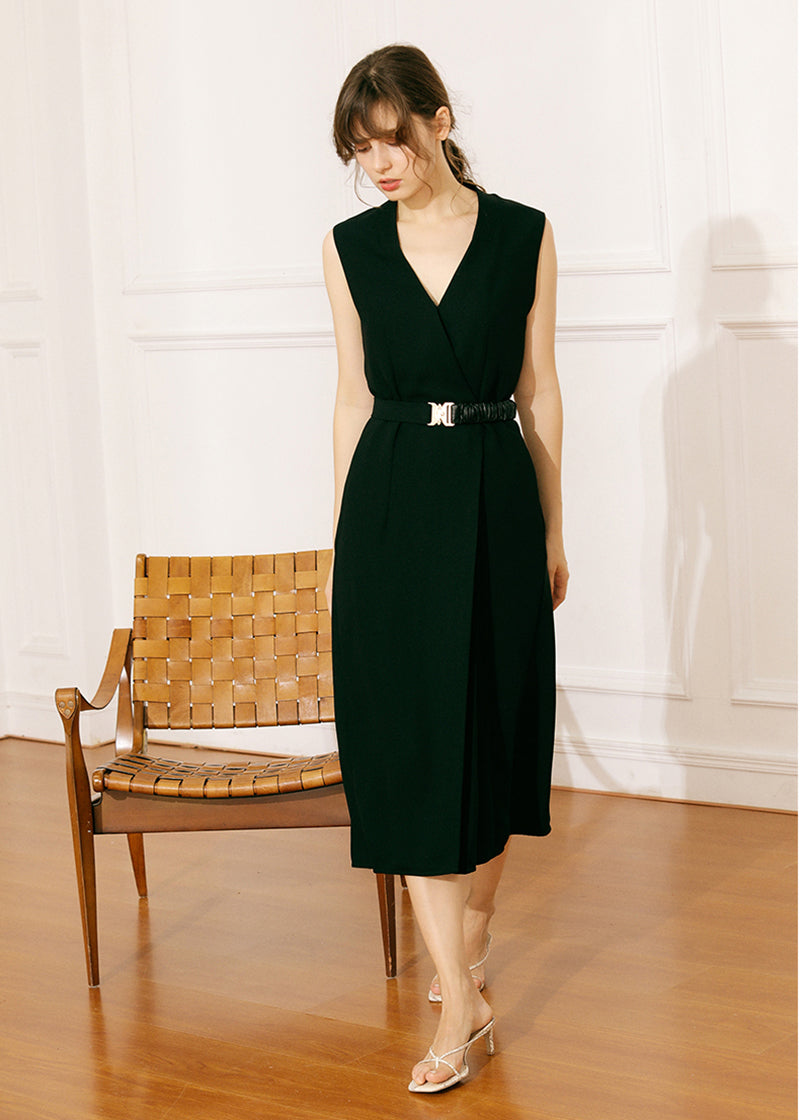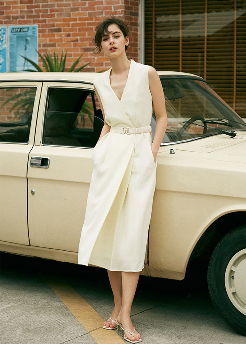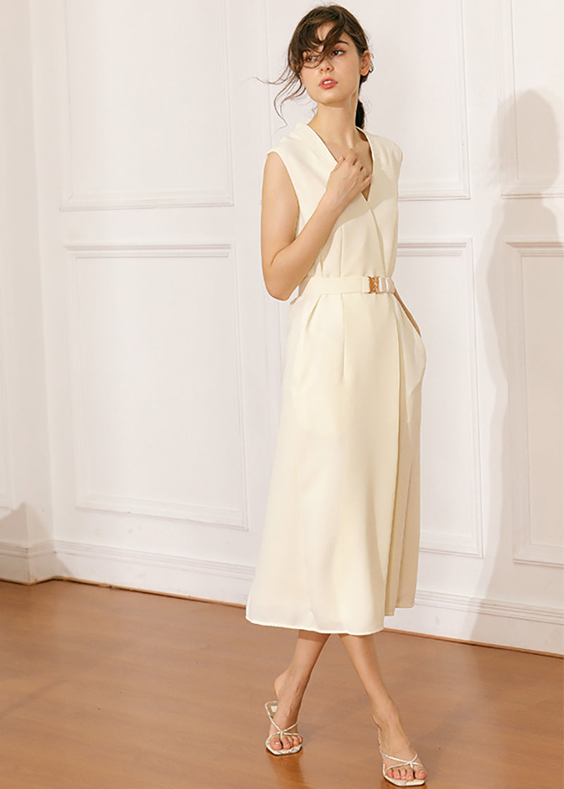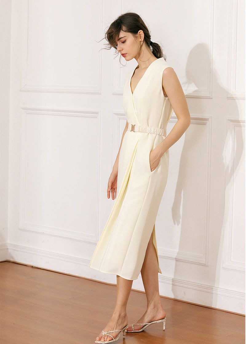 This sleeveless midi dress is made of high-quality acetate fabric, as expensive as silk. The texture is smooth and silky.