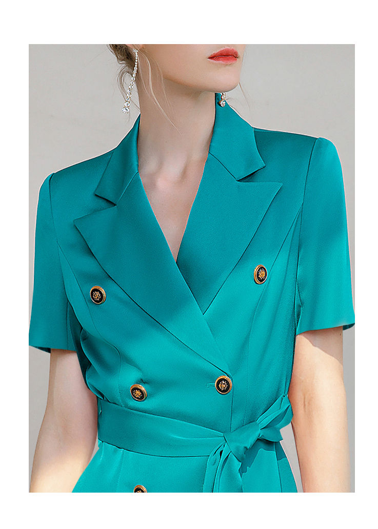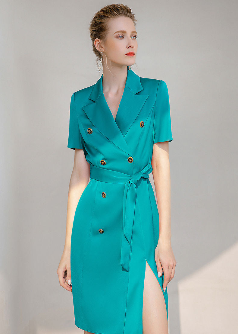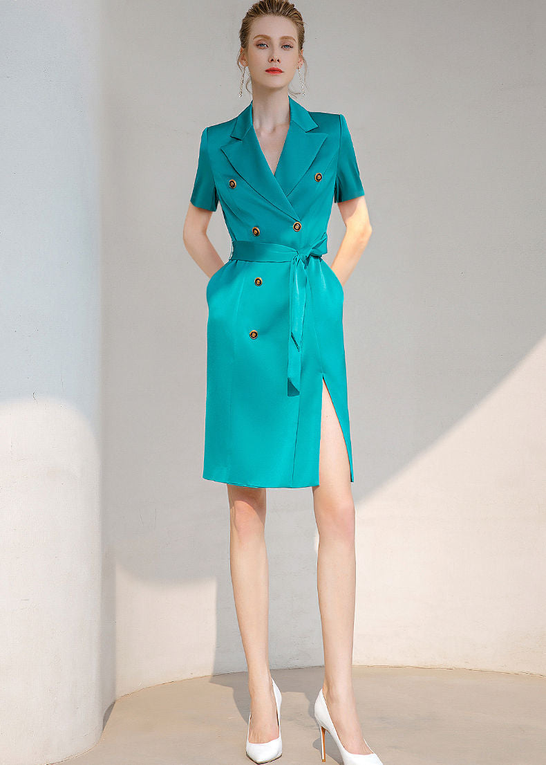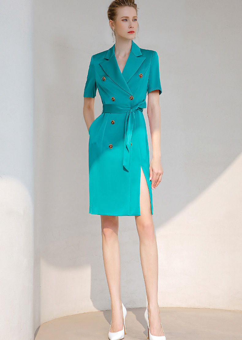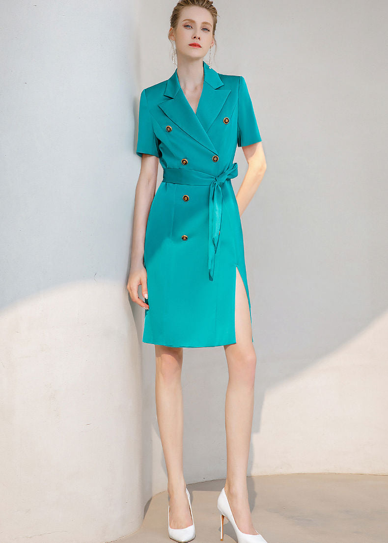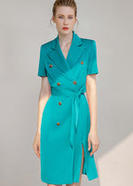 Stay cool and chic during the summer with this double-breasted belted dress. It features an adjustable waist belt, so you can find the perfect fit for your shape. Look your best and feel fabulous in this eye-catching dress!