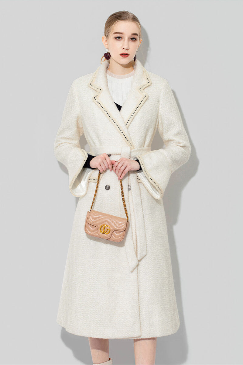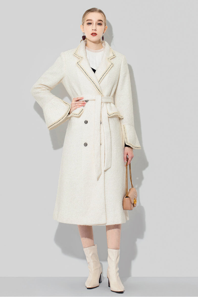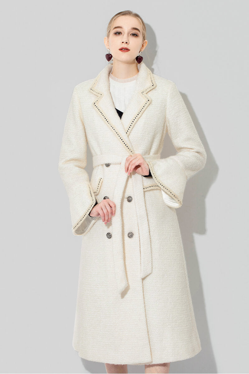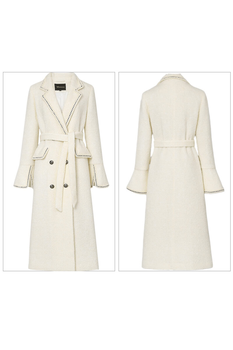 Ivory Tweed Thick Wool Blend Double Breasted Coat