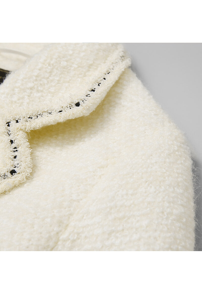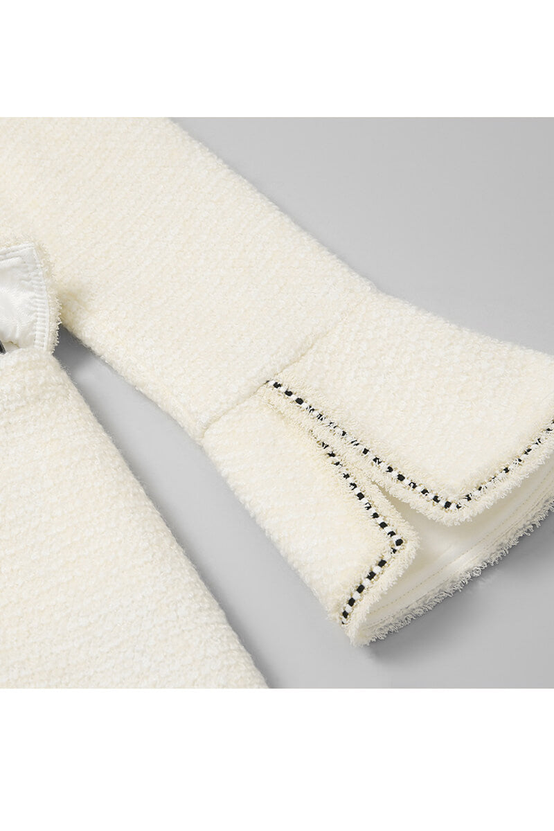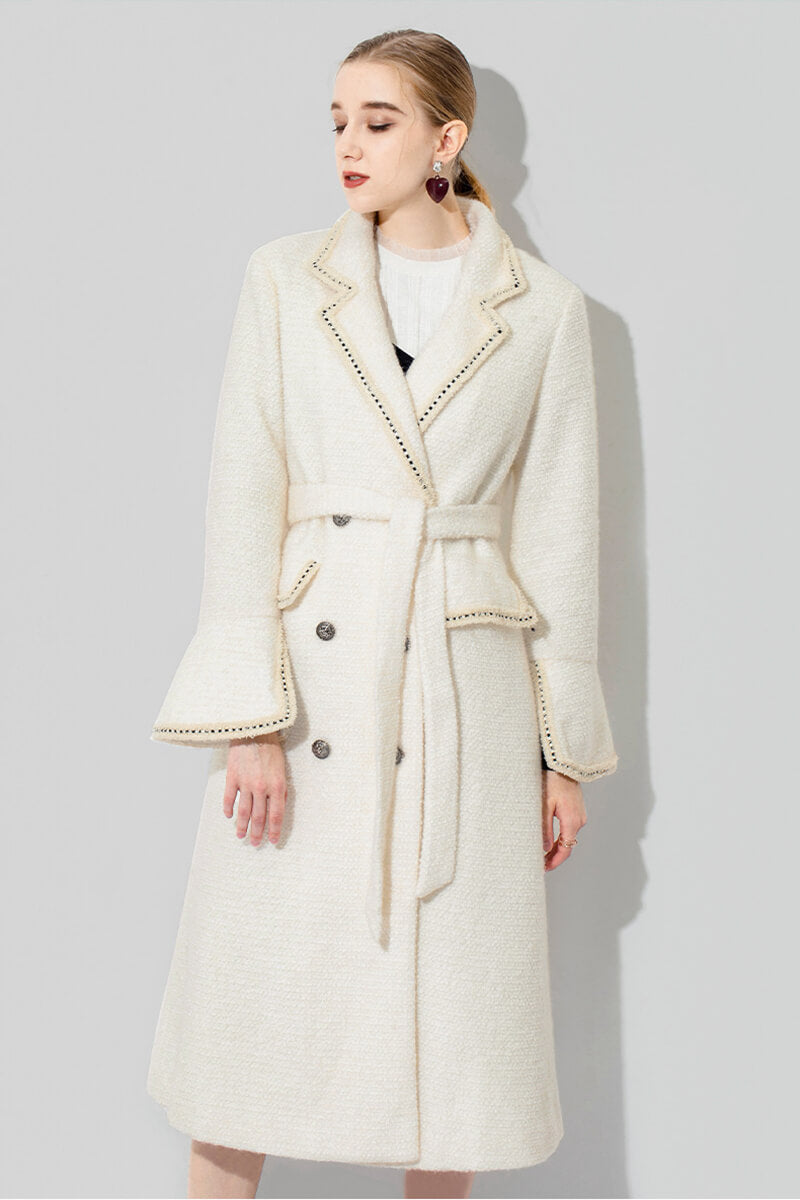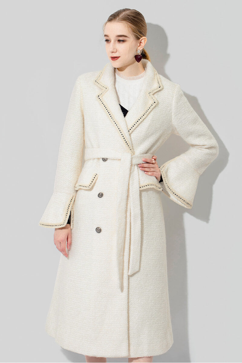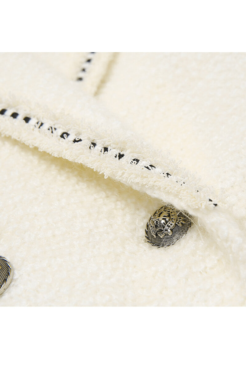 Ivory Tweed Thick Wool Blend Double Breasted Coat